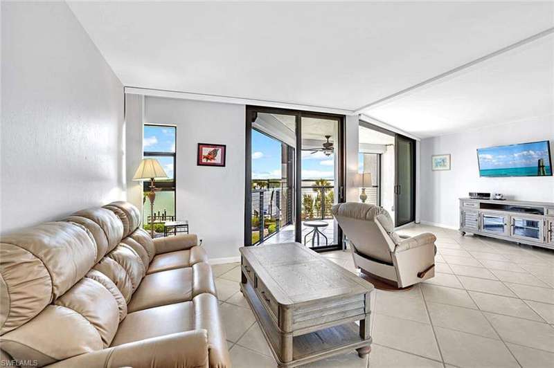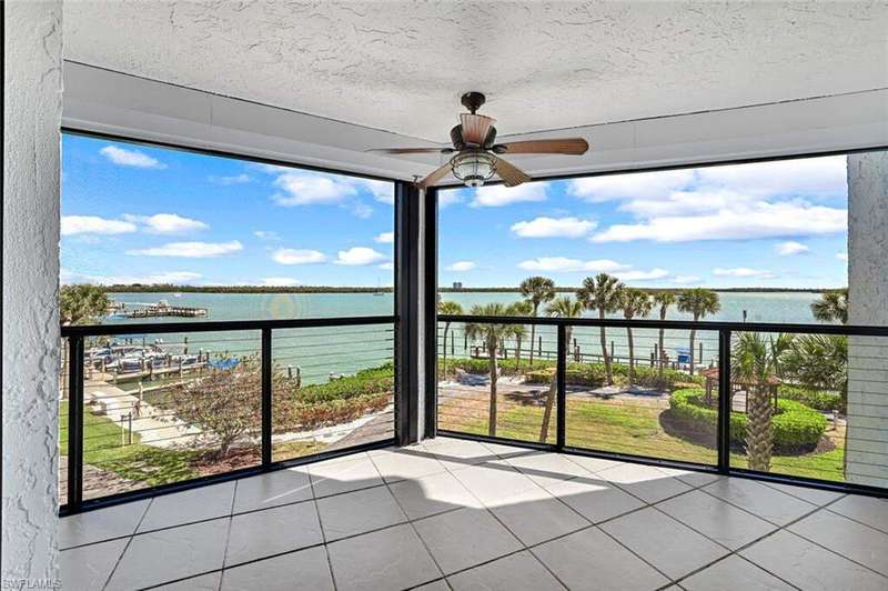 Ready to enjoy this coastal condo in Riverside unit D#306. Stunning views from the large lanai of Marco River leading into the Gulf. This unit includes new impact windows, electric shutters, and excellent amenities. Onsite marina offers boat slop for $600/year. Features tennis/pickleball courts, 2 pools, 2 hot tubs, fishing pier, new clubhouse, shuffleboard, and gas grills. . Perfect getaway or investment with electric included in monthly fees. Allows nightly, weekly and monthly rentals. The unit includes eat-in-kitchen with ample storage, office area, murphy bed in living/sleeping area. 2 full baths. primary bedroom. 2 sliding glass doors to lanai. New impact windows and sliding doors and electric shutters on Lani . recent AC and brand new Hot water heater, Riverside Club is a one of a kind community offering some of the best amenities for island living. you will enjoy the dolphins, boat traffic and water view as you relax and take in the sites from your lanai. The most spectacular sunrises over the water and Jolly Bridge will greet you every morning as is soars over the mangroves.