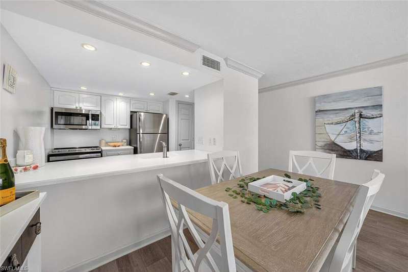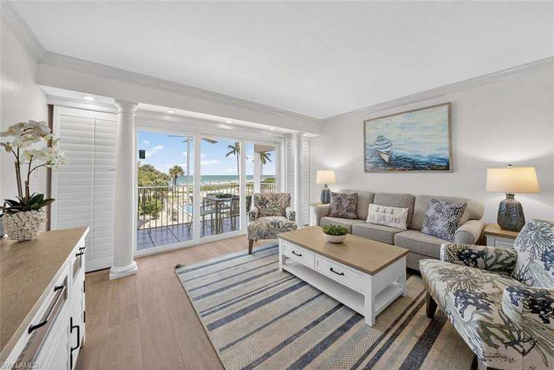 Step into island sophistication with this beautifully renovated one-bedroom retreat, tucked within the private gates of South Seas Resort. Perched on the second floor, this fully furnished condo pairs breezy coastal style with modern upgrades and impressive rental potential. Inside, an airy open-concept design welcomes you with warm luxury vinyl floors, updated counters, stainless steel appliances, a double-wide sink, and designer LED lighting. Floor-to-ceiling hurricane-rated sliders frame tranquil Gulf views and open to your private screened lanai-the ideal perch for sunset cocktails and salty breezes. Perfectly located on the sought-after South End of the resort, you're just a short stroll to Captiva Village, boutique shopping, and beloved dining favorites.