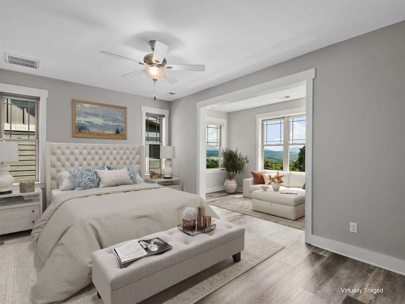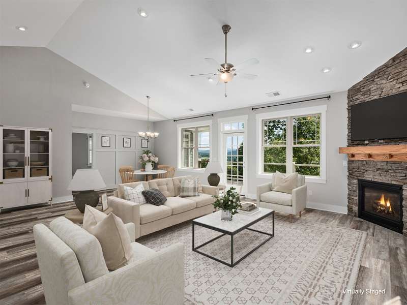 Beautifully crafted 3 bedroom, 3 bathroom Arts & Crafts home in the gated community of Pinnacle at Arabella Heights. Enjoy main-level living with open floor plan, vaulted ceilings, gas fireplace, and large windows framing long-range mountain views. Gourmet kitchen with granite counters, large kitchen island, stainless appliances and pantry. Luxurious primary suite with double vanity, spacious shower, walk-in closet and access to private back deck overlooking stunning views. Low-maintenance lot with HOA-included lawn maintenance. Community amenities include clubhouse, fitness center, pool, and trails. All just minutes from Biltmore Park and downtown Asheville.