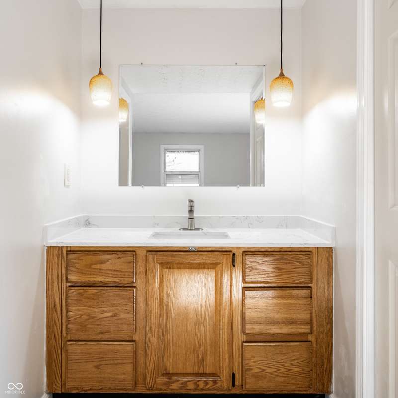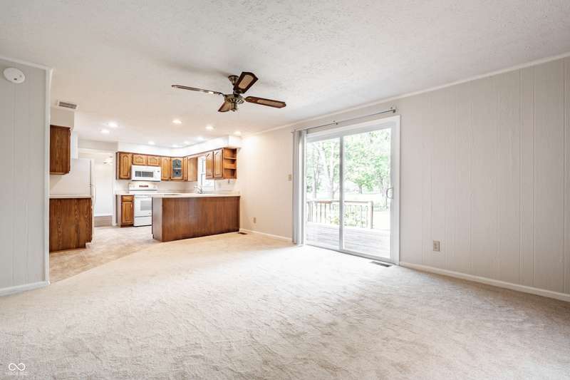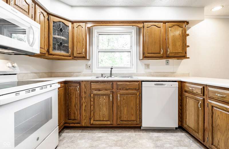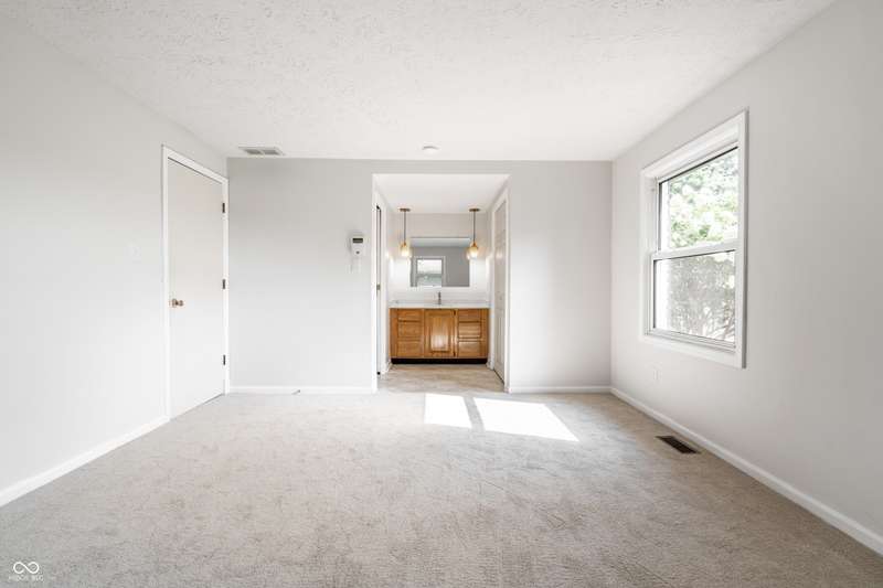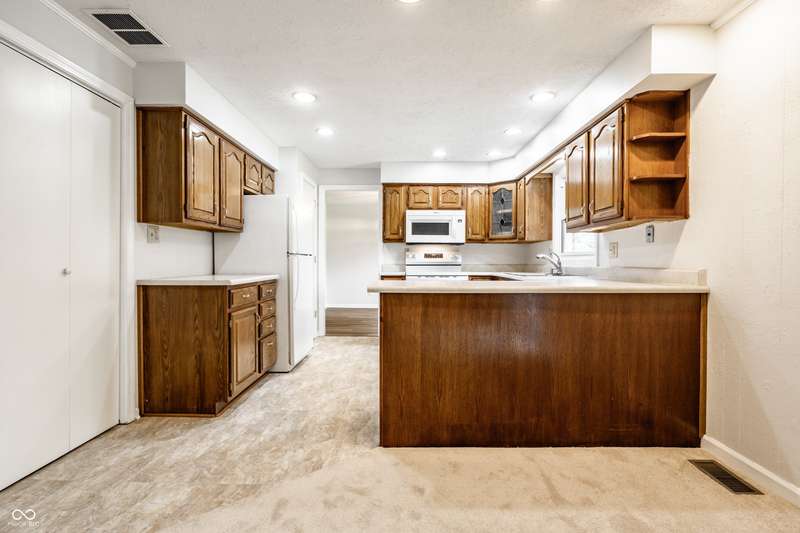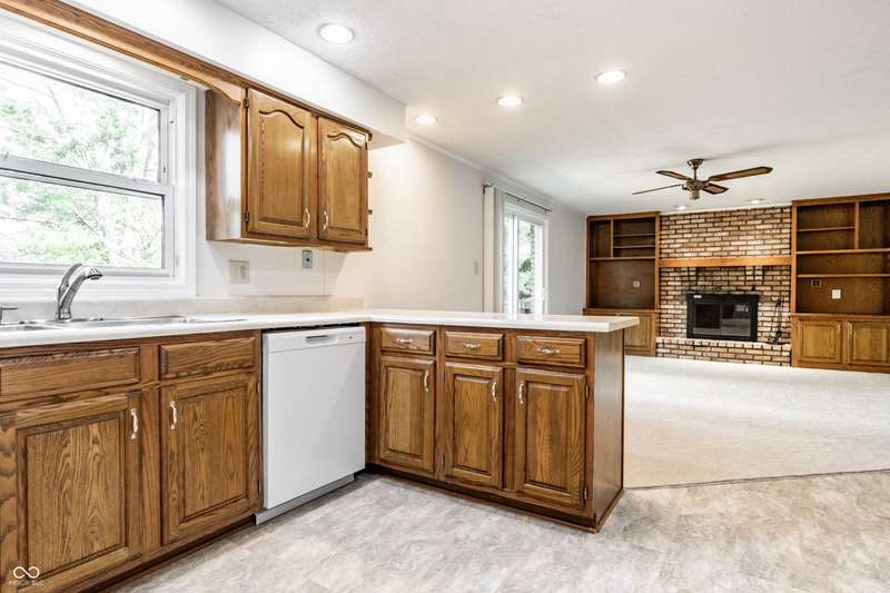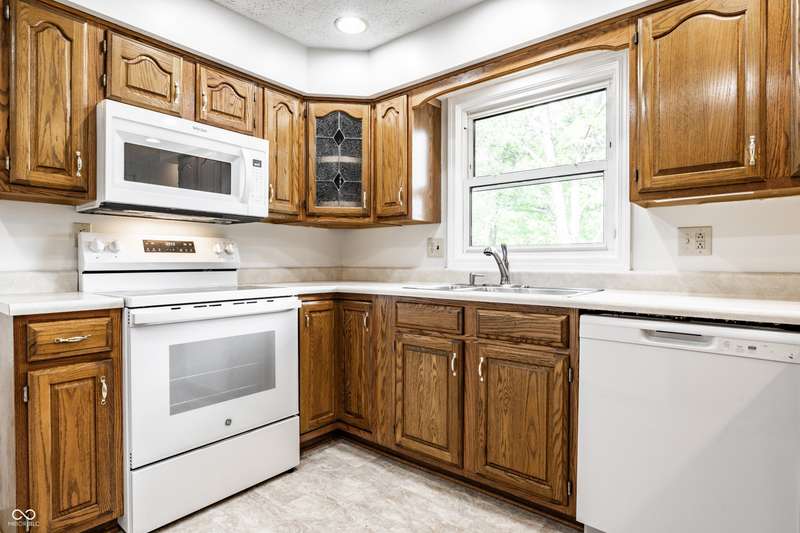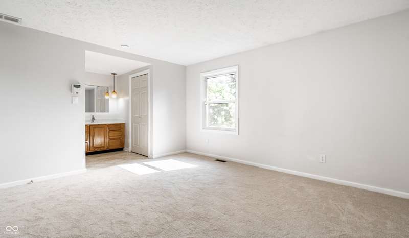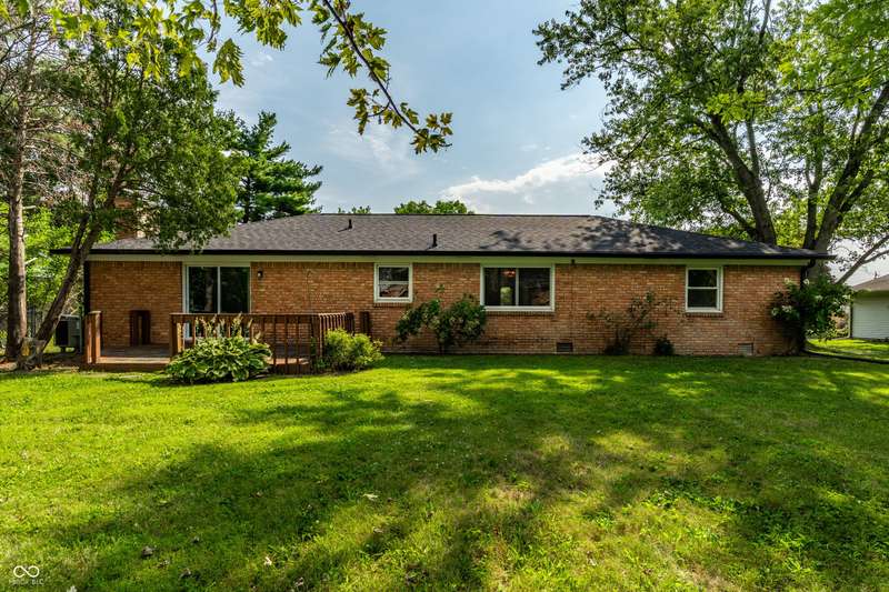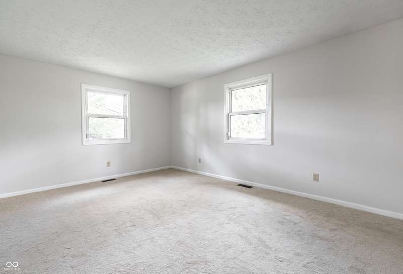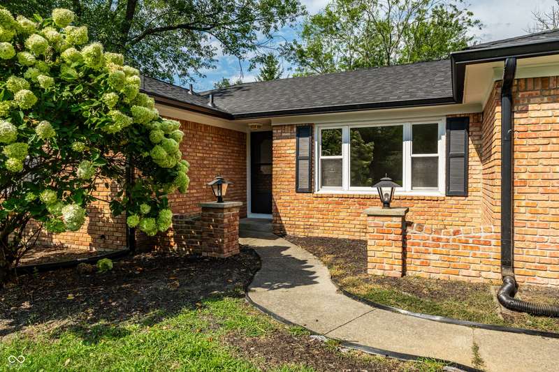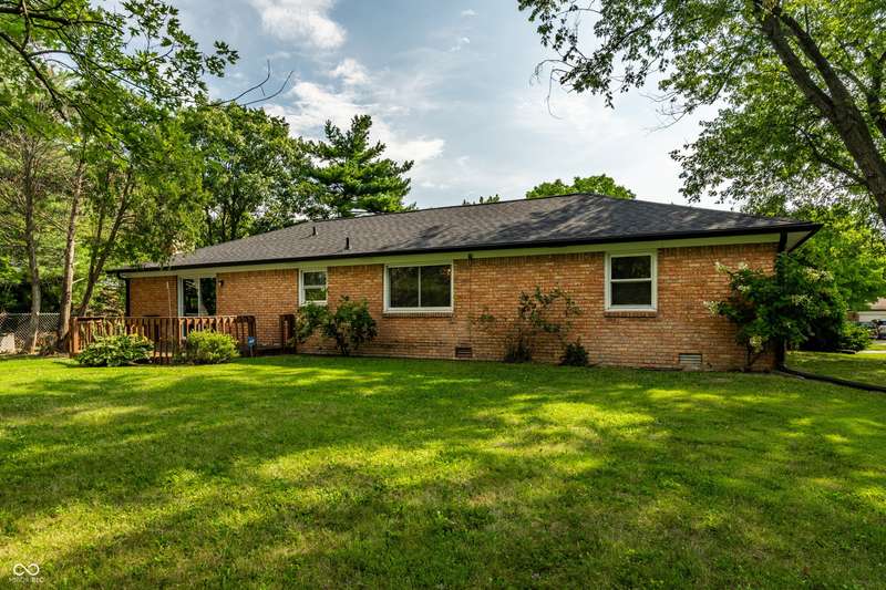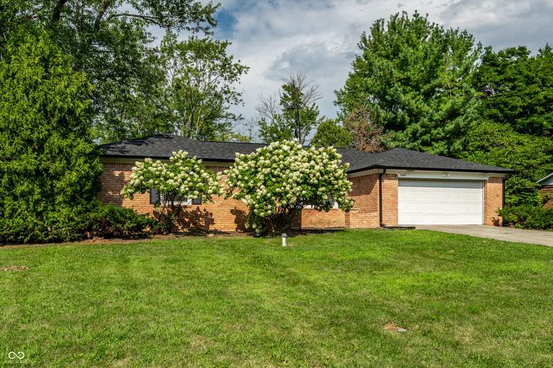 This refreshed 1977 all-brick ranch is the perfect size for a starter home, or for an empty-nester. Fresh interior paint, in a light but restful palette, will brighten your mood as you look out on the park-like yard - more than a third of an acre! You'll love the new flooring throughout - honey-toned luxury vinyl flooring in the spacious entry foyer, living room, dining room, and hallways; fresh vinyl in the kitchen and both baths; and new carpet in the bedrooms and family room. Two living areas - the family room and the formal living room - allow enough space to spread out. The primary bedroom has its own ensuite bath, plus a walk-in closet; and, the second bath has a new tub-shower combination. If a dog is an important part of your household, you'll really appreciate the large fenced-in dog rn on the north end of the backyard! A new roof with transferable warranty, new microwave and dishwasher, recent HVAC, newer gutters, and refreshed exterior masonry will appeal to your practical side. The location, incredibly convenient to the I-465 and all the amenities of Michigan Road in West Carmel, will streamline your shopping, commuting, and entertainment travel. Visit soon!