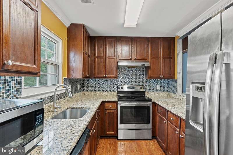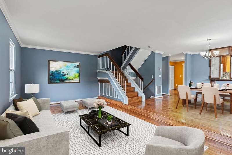 NEW LOWER PRICE!! PRICE REDUCED $15,000!! This is the home you've been waiting for, which has everything you want and need! A MUST SEE 3 bedroom, 3.5 bathroom ""end-unit"" townhome with a 1 car garage! This beauty has gleaming hardwoods in the living room, dining room, kitchen & primary bedroom. Other features include crown molding in the living & dining rooms, renovated bathrooms, stainless steel appliances & granite countertops. The spacious 2nd & 3rd bedrooms have been freshly painted, with new ""plush"" carpeting installed and, they both have generous sized closets! In addition to the lovely hardwood flooring, the ""extra large"" primary bedroom has a ceiling fan, a full wall of closets & a skylight! The fully finished basement has a spacious recreation room with a cozy ""stone"" fireplace, full bathroom & sliders leading to the patio! This home is definitely made for entertaining with its spacious, re-finished deck, concrete patio & fully fenced ""private"" backyard. Extra windows on the side, including a large bay window in the dining room, let in lots of natural sunlight! Home is being sold strictly ""as is"" but is in great condition. To see this home is to fall in love with it! Make your appointment to see this one today, as this one will not last! Some closing help available. VA/Military buyers, ask about assuming the VA mortgage on this home at the great low rate of 2.875%.
