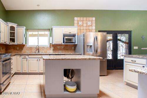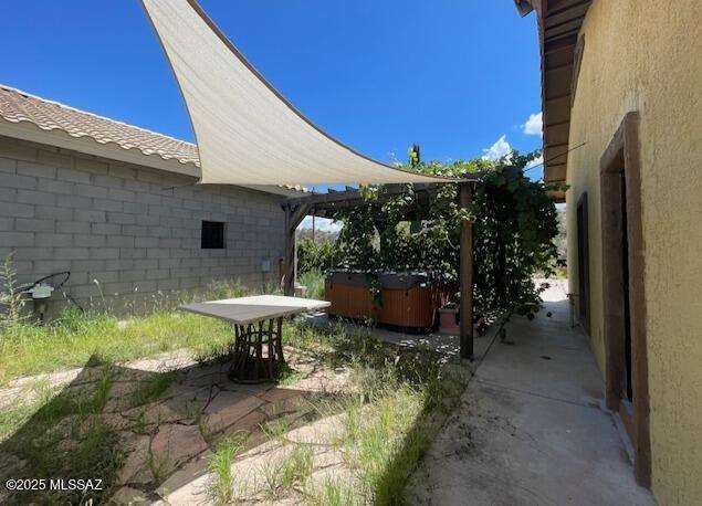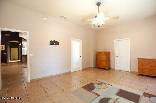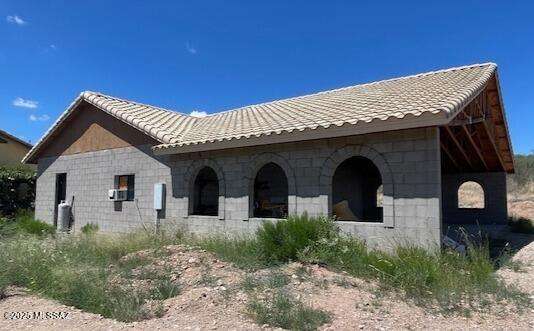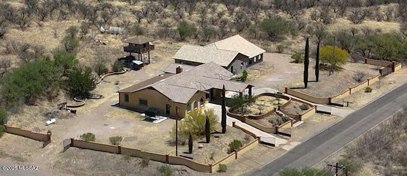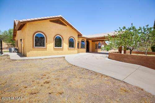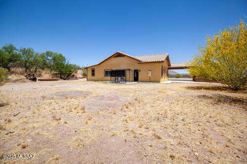 Southwestern Contemporary home is now available in West Rio Rico, above the Santa Cruz River Valley in Southern Arizona. The custom-built one level 3-bedroom and 2 bath, 2564 square foot tile-roofed home on 1.16 acres is a rare find.Distinctive features include custom metalwork entry doors, circular covered gated entry, generous covered back patio and large surrounding level fenced yard. Large bonus workshop/kitchen/carport, 1936 sqft,ideal for projects, the creative or designers. Including connections for half bathroom planned with toilet and shower plumbing installed, but not complete. RV parking and hookup. From the elevated larger lot, set back from the road, you can enjoy privacy, family, entertaining, fabulous sunrise/sunset views.