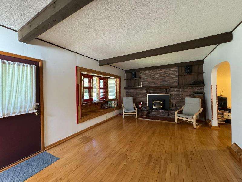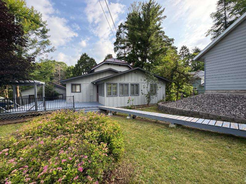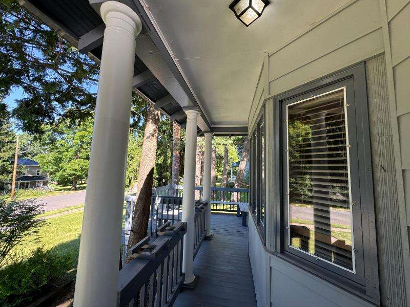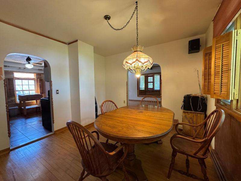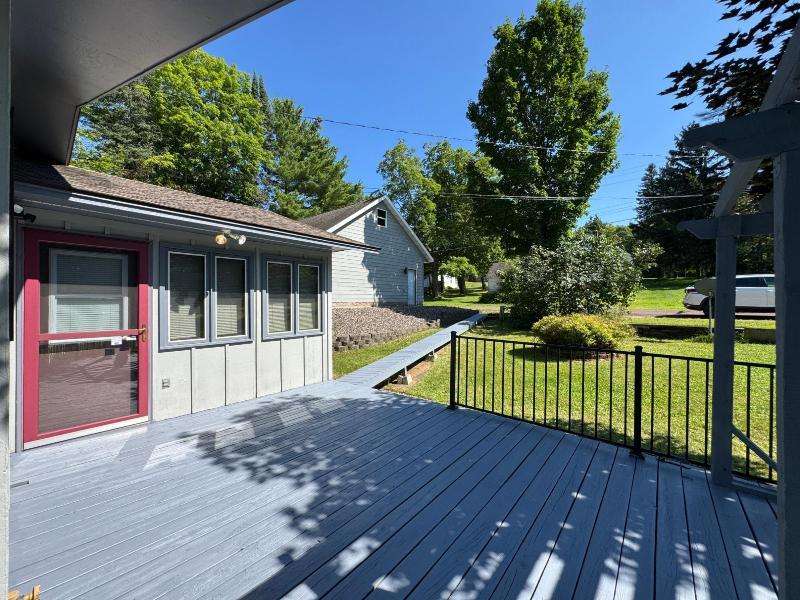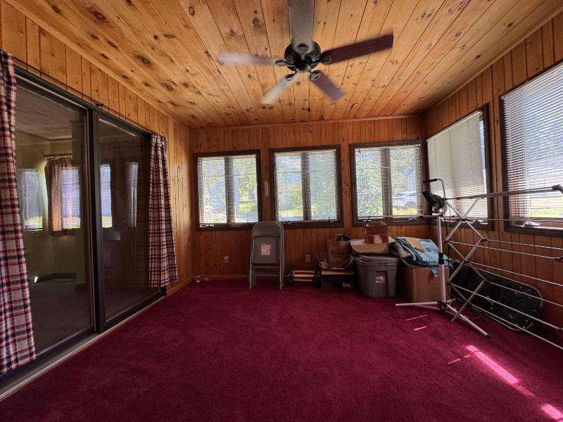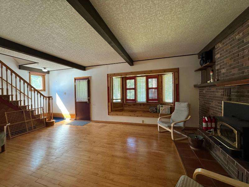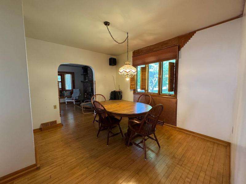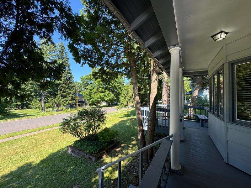 Spacious Layout, Custom Features & 2 garages! Well maintained 4-bed, 2.5-bath home nestled on a nice lot in the quaint town of Montreal. Main floor boasts a living room w/a cozy fireplace & a formal dining room. A main-floor master suite features a full bath & double closets. Main-floor laundry is shared w/a bathroom, making it a practical & efficient. Work from home or relax in the inviting den, which opens through to a four-season sunroom clad in T&G knotty pine. Upper level has 3 br one used as office. Home is equipped with a wired stereo system, adding an extra touch of entertainment throughout. Outside a large, custom-built deck & mature trees provide natural privacy & shade. Durable metal roof ensures low-maintenance. For the hobbyist or anyone needing extra storage or workspace, this property includes a detached 2-car garage & addl 3-car garage w/loft accessible from the alley. Full basement has an electric sauna. Outdoor enthusiasts will love the easy access to nearby trails.