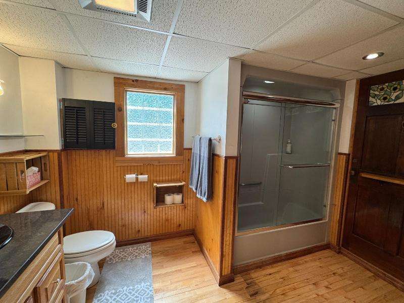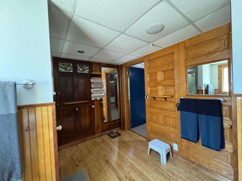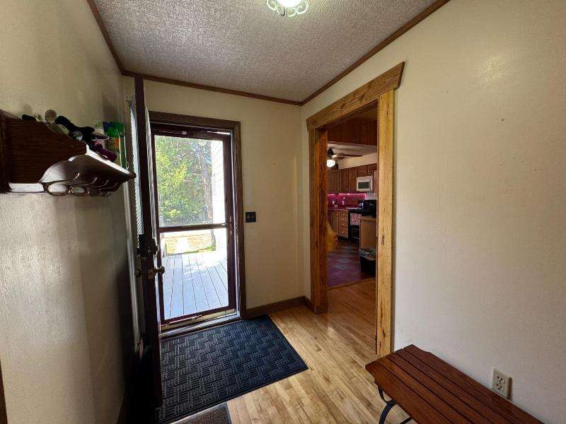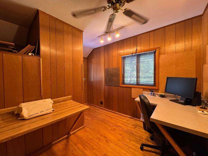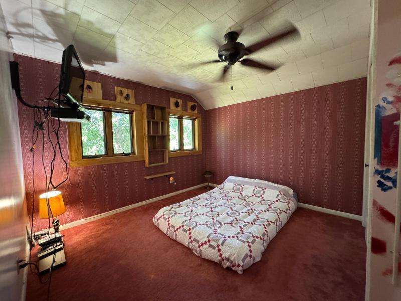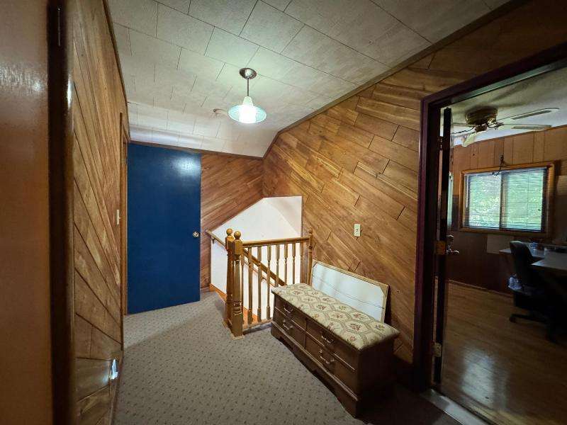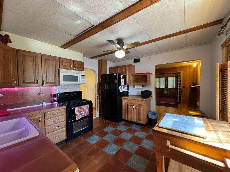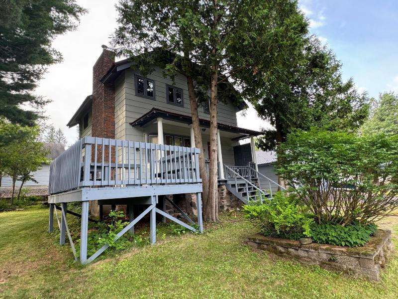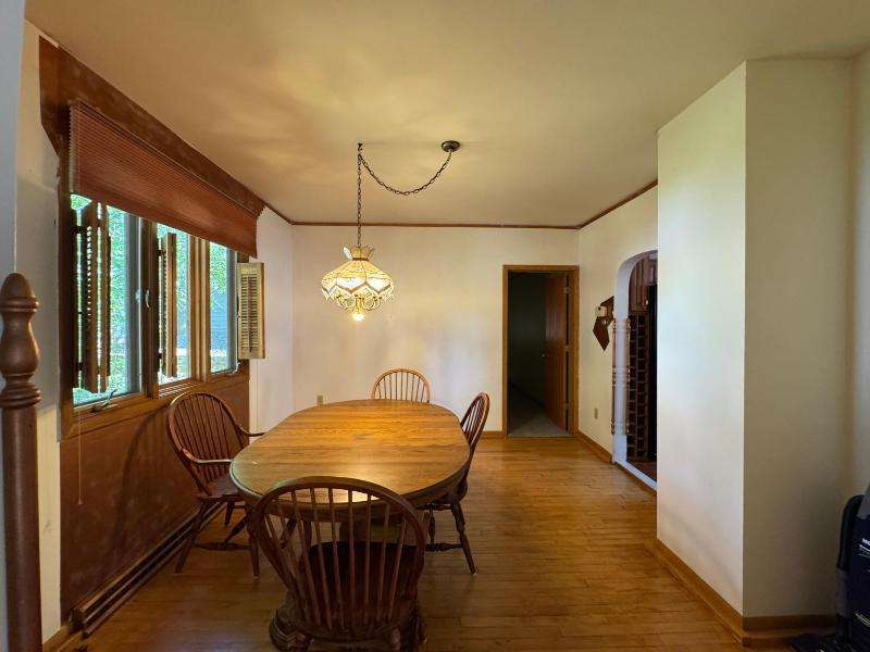 Spacious Layout, Custom Features & 2 garages! Well maintained 4-bed, 2.5-bath home nestled on a nice lot in the quaint town of Montreal. Main floor boasts a living room w/a cozy fireplace & a formal dining room. A main-floor master suite features a full bath & double closets. Main-floor laundry is shared w/a bathroom, making it a practical & efficient. Work from home or relax in the inviting den, which opens through to a four-season sunroom clad in T&G knotty pine. Upper level has 3 br one used as office. Home is equipped with a wired stereo system, adding an extra touch of entertainment throughout. Outside a large, custom-built deck & mature trees provide natural privacy & shade. Durable metal roof ensures low-maintenance. For the hobbyist or anyone needing extra storage or workspace, this property includes a detached 2-car garage & addl 3-car garage w/loft accessible from the alley. Full basement has an electric sauna. Outdoor enthusiasts will love the easy access to nearby trails.