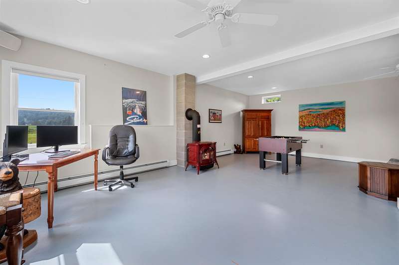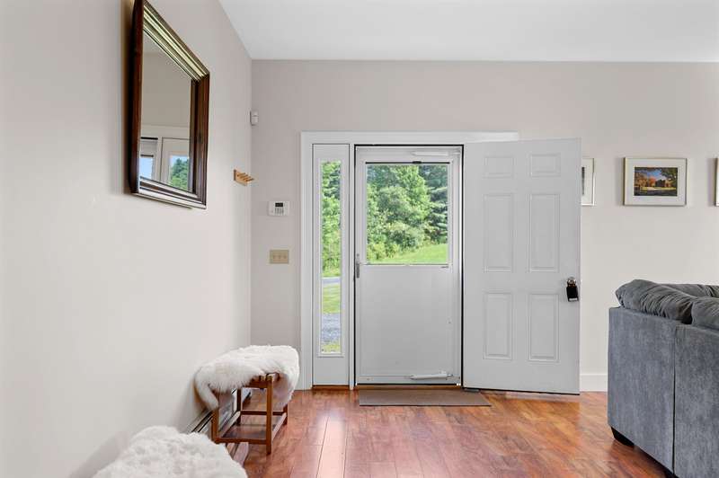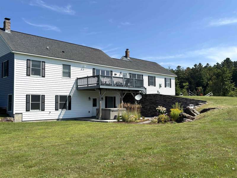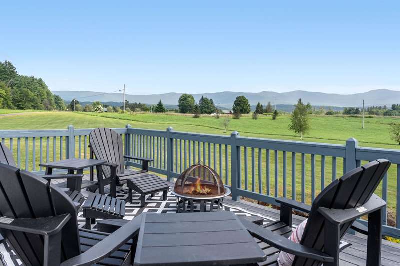 Welcome to this spacious 3000+ sq ft home. Situated between the charming towns of Stowe and Morristown! You'll appreciate the incredible location, which offers easy access to local amenities and attractions while maintaining a sense of serene privacy. This property boasts breathtaking panoramic views of the surrounding mountain ranges, including majestic Mount Mansfield and the picturesque Worcester Range, providing a stunning backdrop for everyday living. Enjoy the tranquility of 2.54 acres, complete with access to a large pond, perfect for quiet reflection or outdoor activities. You'll be greeted by a custom stone patio, setting a warm and inviting tone that hints at the comfortable living space within. The main level features a large eat-in kitchen, which is perfect for gatherings and everyday meals, along with a comfortable living room that comes equipped with a wet bar, wine fridge, and a cozy gas fireplace, creating an ideal spot for relaxation. An open, finished lower-level offe