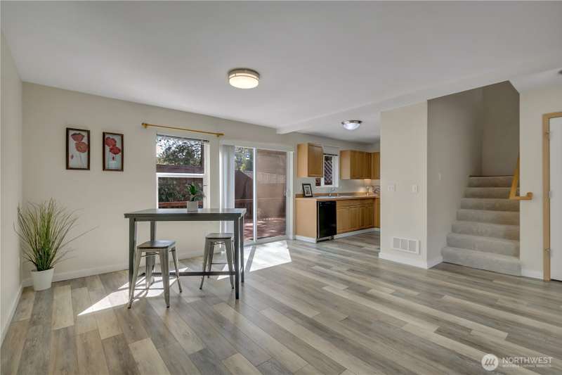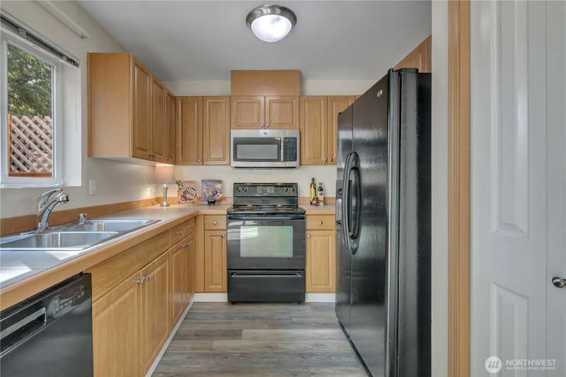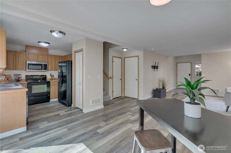 Welcome to Glacier Valley! This well-kept townhome with a welcoming front porch is in the desirable Tahoma School District and steps from Glacier Park Elementary. Featuring two primary bedrooms, each with its own bath, and one with a walk-in closet, plus a convenient half bath on the main floor. The open living/dining space flows to a bright kitchen with a pantry and a view of the private, low-maintenance backyard. Step out to the HUGE custom back deck—perfect for BBQs, parties, or relaxing evenings. Fresh interior paint, new carpet, and new hot water heater. 1-car garage, neighborhood park, and nearby trails. A fantastic find in Maple Valley!