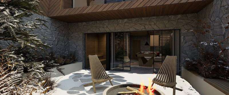 With a spacious living room, a dining room with a kitchen, three bedrooms with bathrooms, and a private garden, this residence offers an abundance of space for both relaxation and entertainment. This mountain sanctuary is completed with the indulgence of a private sauna, offering a rejuvenating escape to restore the mind, body, and soul. Two beautiful terraces allow you to enjoy the greenery and wood surrounding the chalets. A heartwarming atmosphere is created with natural materials, combining the beauty of wood and other organic elements.