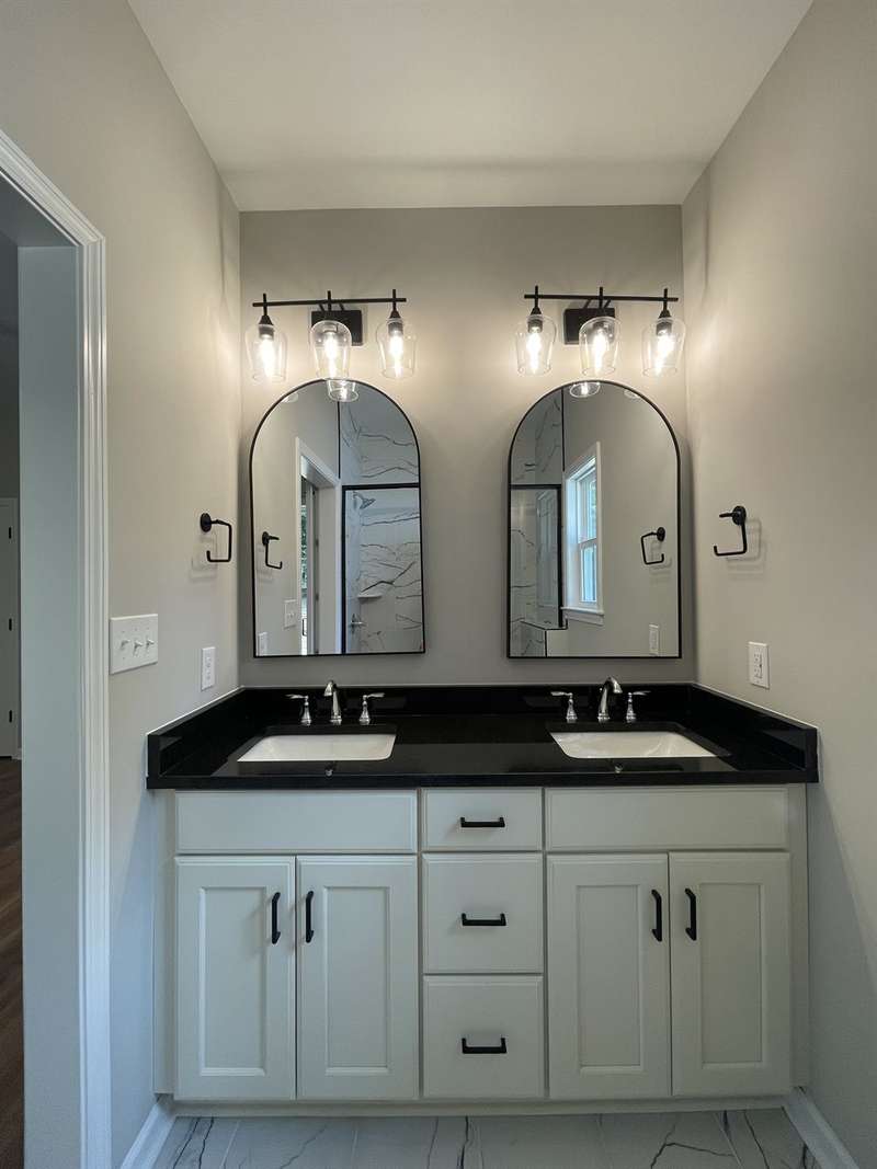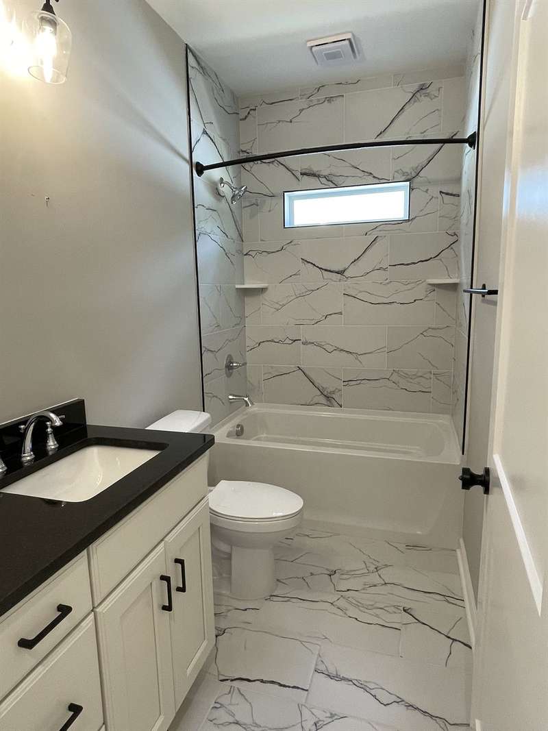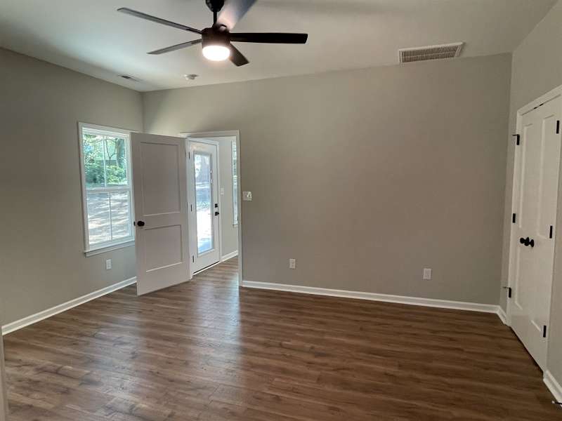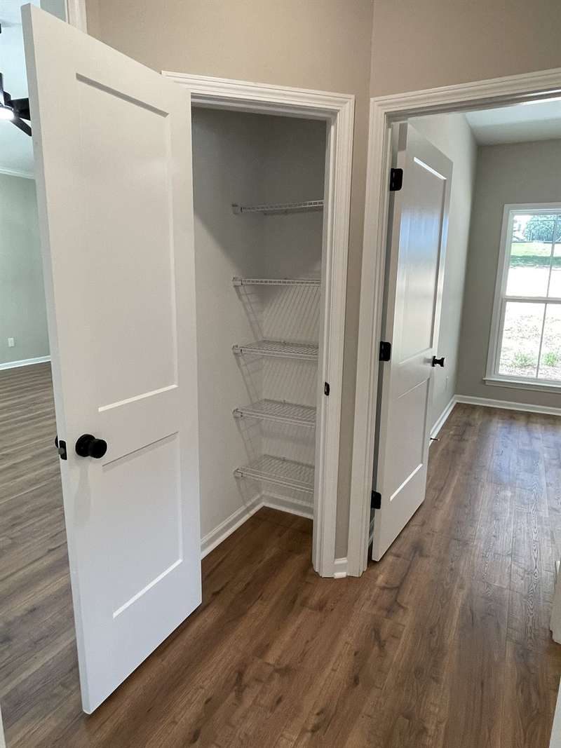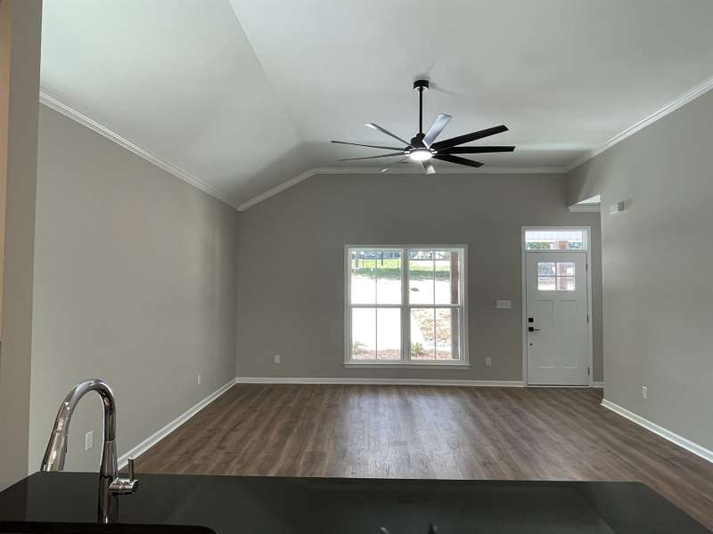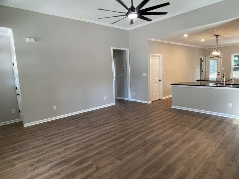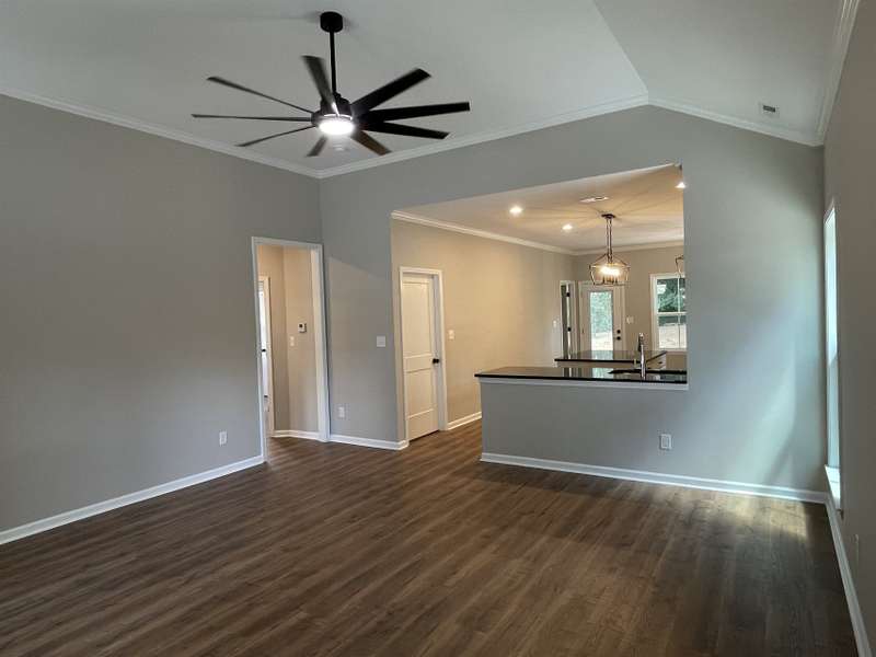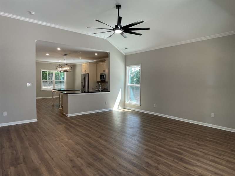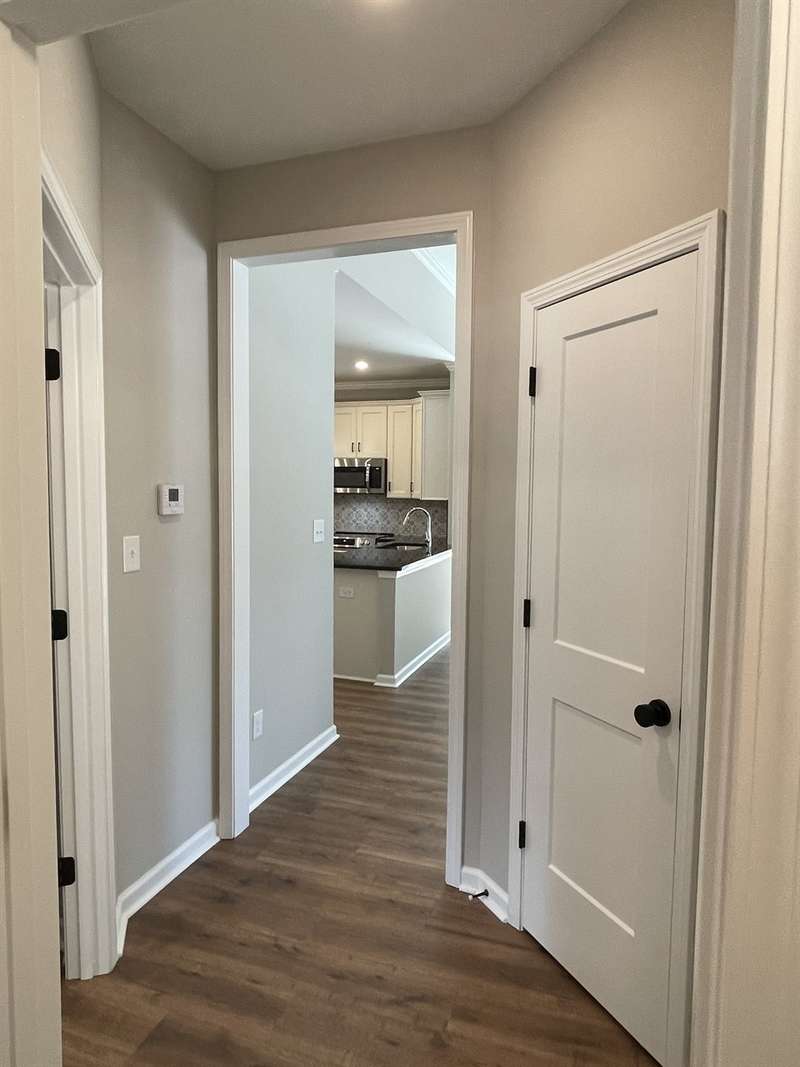 Expanded Dogwood Cottage plan completed and move-in ready. Includes stainless steel kitchen appliance package with refrigerator. Has granite counter tops in kitchen and baths, and tiled kitchen backsplash, as well as a tasteful granite-topped kitchen island/breakfast bar with table legs. Wood-look laminate LVT throughout except tiled bathrooms. Primary BR has walk-in closet and bath with step-in shwr with a tiled surround and glass door. Covered front porch. Landscaped with shrubbery and rock. Architectural roof. Efficient all electric with heat pump. Extended driveway parking pad on the right side of the house with sidewalk curving to the 12x12 patio. Back yard and right lot line has 5' wooden privacy fence. See Matterport tour to walk through similar standard Dogwood plan (though this expanded plan is approx 63 sq.ft. larger than representative tour). Only 16 miles to Charlotte Douglas!