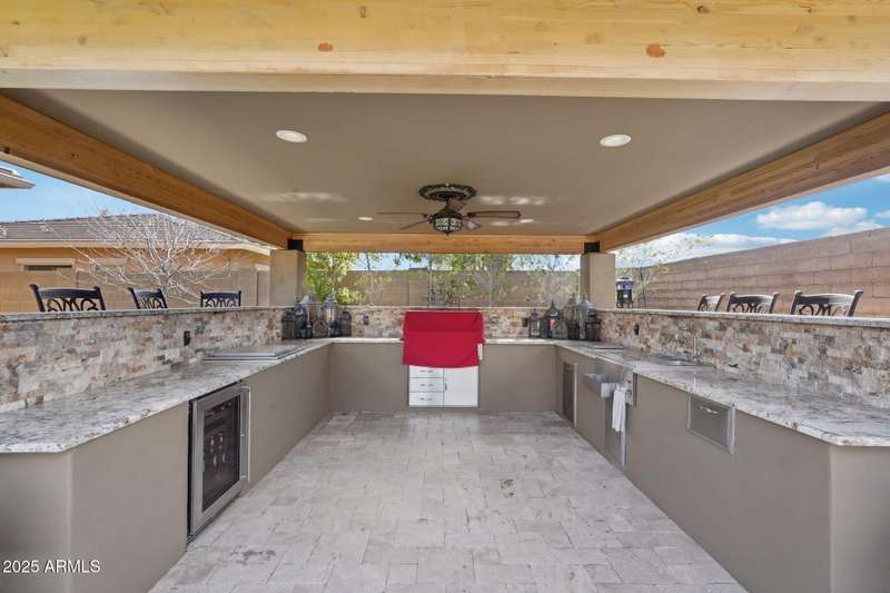 2 Newly installed Trane HVAC units!!Welcome to luxury living in the prestigious guard-gated Blackstone community! This exquisite single-level,mountain/sunset views offers 3 bedrooms,3.5 bathrooms and office,all within an open and bright floorplan. The gourmet kitchen is a chef's dream, featuring all new GE Monogram appliances,including a built-in fridge,oversized kitchen island with cabinets on both sides.extended cabinetry in the dining area and huge walk-in pantry.Highlights includes seller attention to detail with all new light fixtures and oil rub bronze door handles/hinges, plantation shutters and new water heater. Step outside to your private oasis, where the backyard has been meticulously renovated.Enjoy the travertine pavers,gas fire pit,large gazebo,and outdoor kitchen