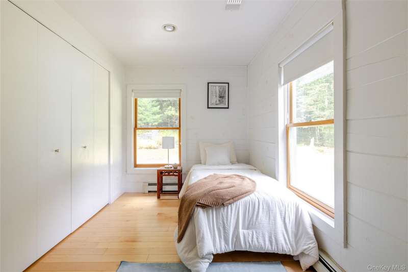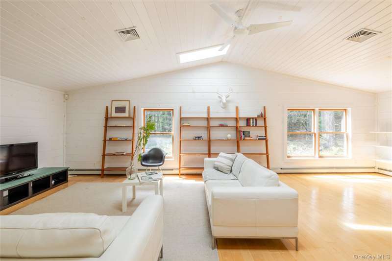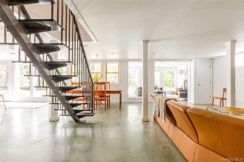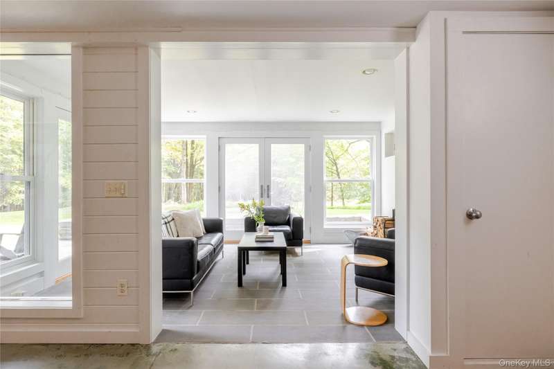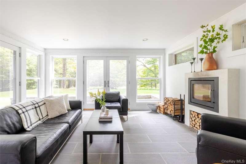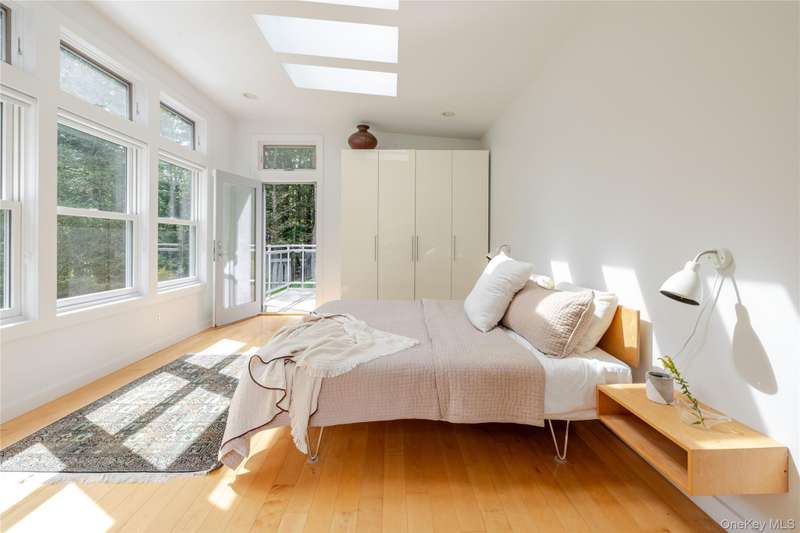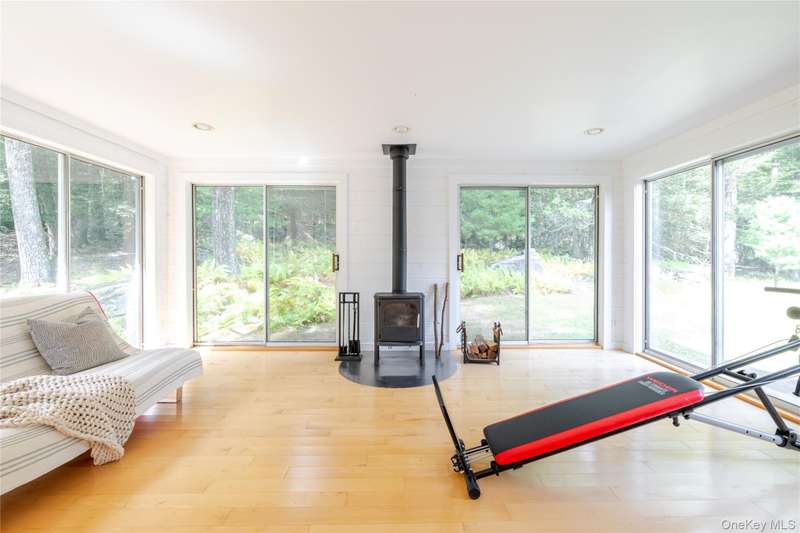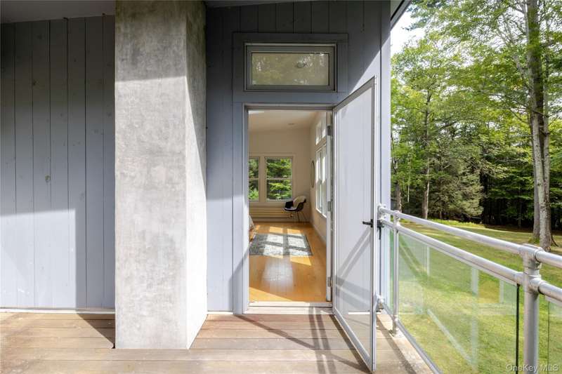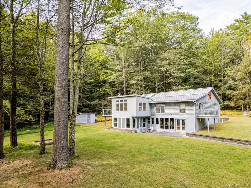 Welcome to Fawn House, a modern rustic retreat in evolving Accord, celebrated for its rural tranquility and sophisticated amenities. Sitting quietly on over 28 acres across two parcels, this property offers privacy, peace, and an effortless connection to nature. Walls of glass and a Scandinavian-inspired design fill the 3,055-square-foot residence with natural light, creating a warm and welcoming atmosphere. The first floor is designed for gathering, with an open kitchen, dining, and living area at its center. A den with a wood stove provides a cozy retreat in cooler months, while a full bath, laundry room, and storage room add comfort and convenience. Upstairs, a vaulted great room opens to a sunroom with another wood stove, perfect for watching the seasons unfold. The spacious primary suite is complemented by two additional bedrooms, a study, and two full baths, balancing private space with areas for work or guests.Decks and bluestone patios extend the living space outdoors, ideal for entertaining or unwinding among the quiet beauty of the landscape. The property consists of two parcels: The home sits on 4.89 acres with a shed and an oversized garage that offers abundant storage and flexible possibilities. The adjoining 23.5-acre parcel remains undeveloped, preserving a serene backdrop while offering potential for future expansion or long-term conservation.Though tucked away, the location is minutes from farm-to-table favorites like Westwind Orchard, Accord Market, Saunderskill Farm and Ravenwood, along with the members club, spa, and restaurant at Inness. The nearby towns of Stone Ridge, High Falls, and New Paltz offer additional shops and dining, while Minnewaska State Park and Mohonk Preserve are close at hand for endless outdoor adventure. This rare Hudson Valley offering combines modern design, expansive acreage, and a prime location, making it an exceptional retreat or full-time residence.