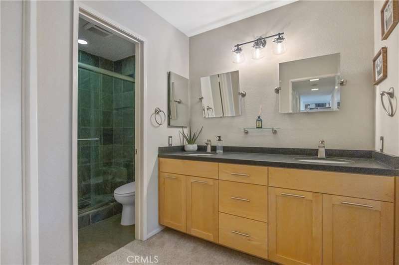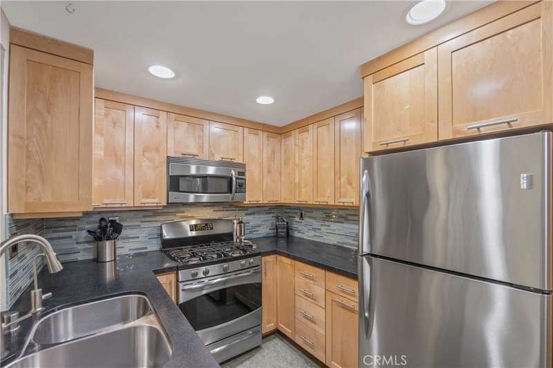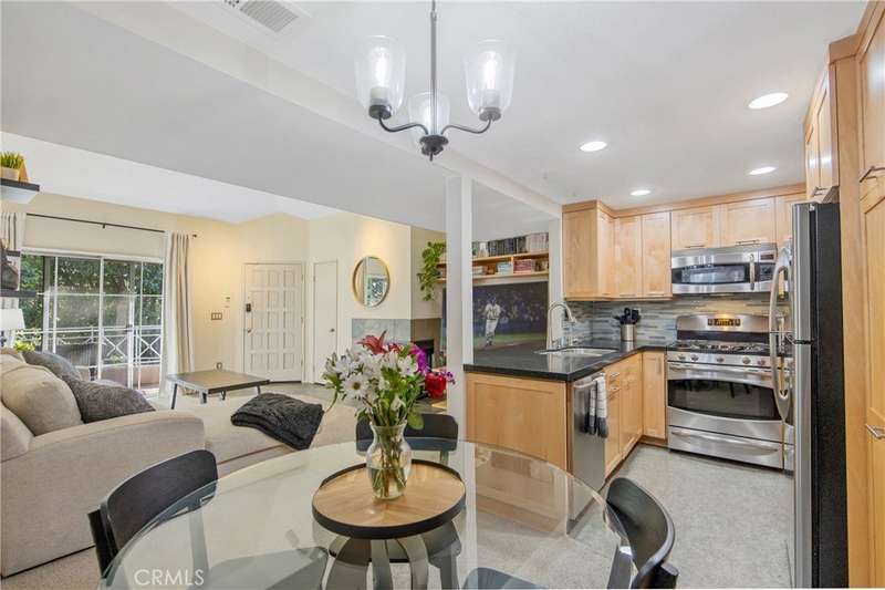 Stunning Upper Unit with Custom Extended Kitchen Located in the Heart of Valencia. This complex is WARRANTABLE, AND FHA & VA APPROVED! This Beautiful Home Boasts Soaring Ceilings and an Abundance of Natural Daylight compliments of the Living Room Balcony's Sliding Door. The gourmet Kitchen is a Chef's dream featuring Elegant Shaker style Cabinets, sleek Black Granite Countertops, a Stylish Glass tile Backsplash, under cabinet Lighting and Recessed Lighting. Design Details include Pull out Pantry doors, Pull out Spice Rack, and an Added Bar Area with Glass Display Cabinets, Perfect for Entertaining! A Wine Refrigerator and Stainless Steel Appliances complete the Upscale Kitchen. The Entry way is Adorned with Slate Flooring and Fireplace Surround and Custom Built-in Maple TV Stand with Shelves and Upper Shelving. Both Bathrooms have been tastefully Remodeled with matching Shaker-Style Cabinets, Black Granite Countertops, Updated Lighting, and Stone Tile Tub & Shower Surrounds, Offering a Spa-like Retreat. Additional Highlights Include a Smart Thermostat for energy efficient comfort, Keyless Entry, GE High Efficiency Front Load Stackable Washer & Dryer , and Motorized Shades in both Bedrooms. Sit back and Relax with morning Coffee or Evening Wine on the Living Room Balcony! Parking is a breeze with a One-car Garage, Plus an Additional assigned Parking Space. Residents also enjoy Incredible HOA Amenities including Resort-Style Pools, Spas and more! All of this and Located Walking Distance to Premier Shops, Dining & Entertainment making this a rare Opportunity to own a Luxurious Home in one of Valencia's Most Desirable Communities.