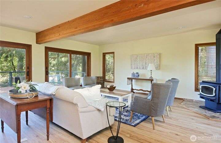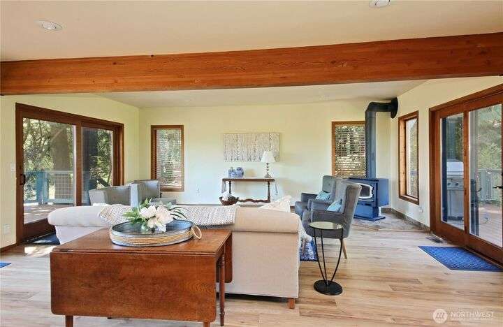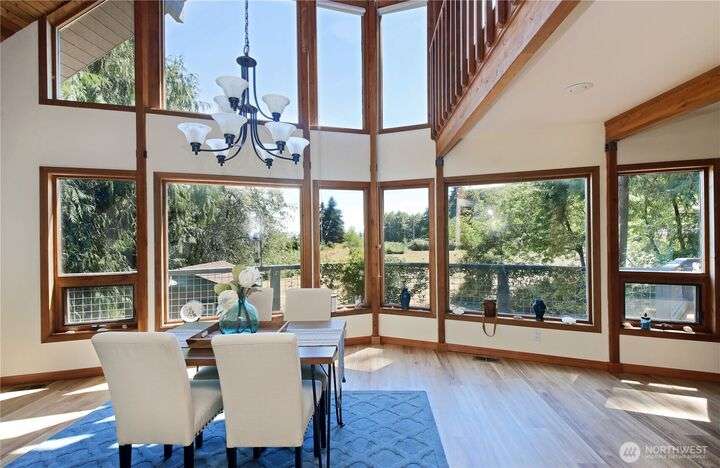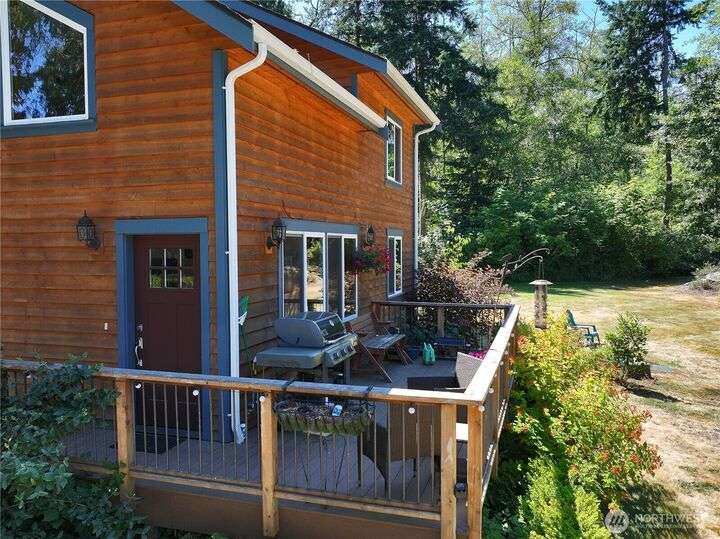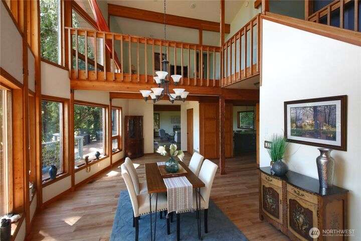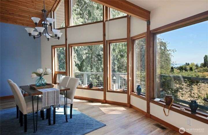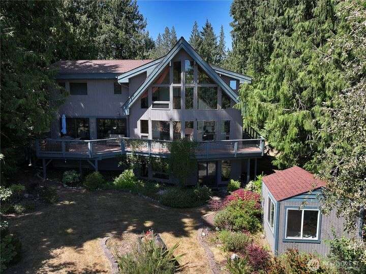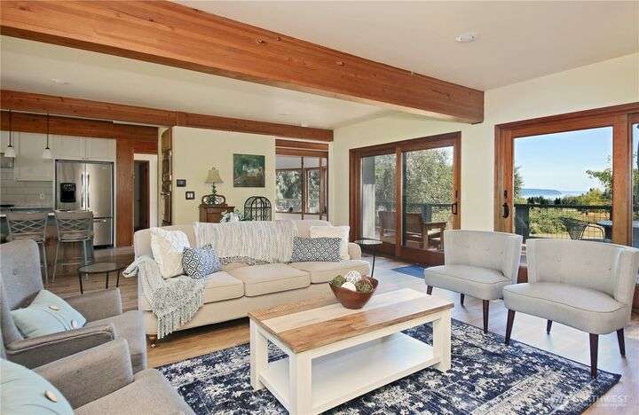 Two separate beautiful homes set on a stunning Whidbey Property close to Double Bluff Beach. Short term rent one, live in the other. The main home, a Contemporary Lindal Cedar home, Mt. Rainier & City views from every window & true wrap around deck. The spacious main floor boasts a tastefully renovated kitchen, floor to ceiling windows, great room w/ wood stove, dining area w/vaulted ceilings & an office. Upstairs is a master suite, 2 bedrooms, + flex area. A separate suite below with full bath & private entrance. The Cottage, A 2018 built 3 bedroom, 2 bath, 1000+/-sf custom DADU is placed in the sun next to the custom 2 stall barn w/ loft. Mature cedars, orchards, trails, all placed thoughtfully on the beautifully wooded acres 5 ± acres.