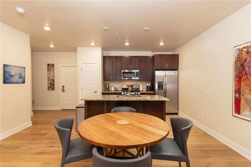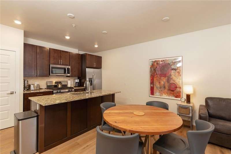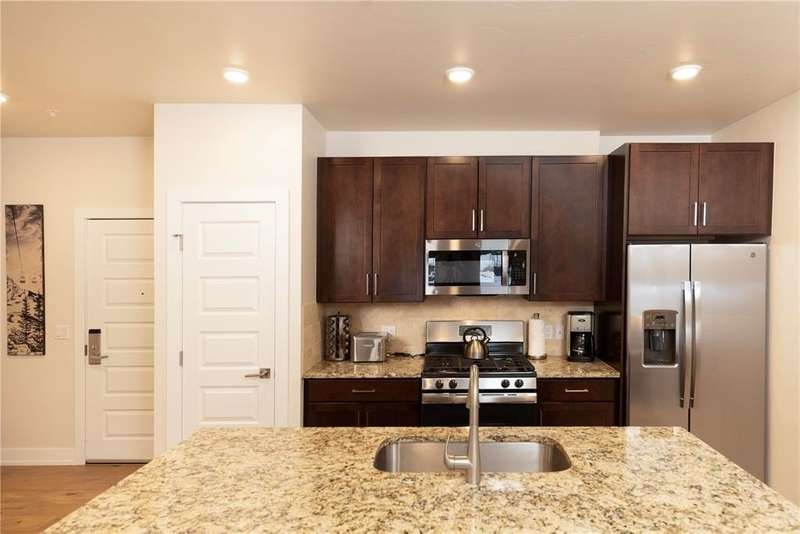 No need to wait for a new construction; this is one of the most recently built 1-bedroom options available in Keystone, ready for immediate enjoyment! There are no transfer or resort fees, and short-term rentals are allowed. Benefit from some of the most competitive HOA dues in Keystone, covering all utilities. This residence features a designated spot in a heated and secure garage, complete with EV charging and a 5x9 storage unit. Access is easy with an elevator from the garage, and ski lockers are conveniently located just down the hall. Unwind in the on-site hot tubs and consider optional access to the East Lake Pool. Indoors, indulge in upscale finishes and furnishings, including granite slab countertops and stainless steel appliances. Plus, enjoy the convenience of a full-sized washer and dryer within the condo.