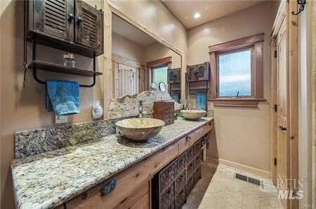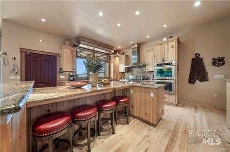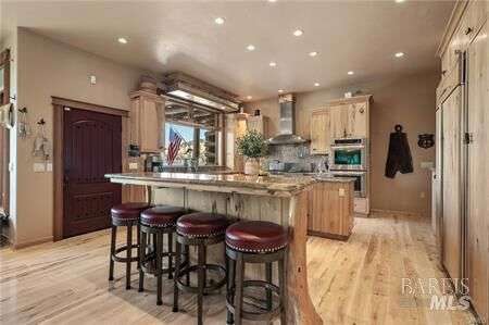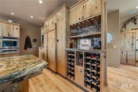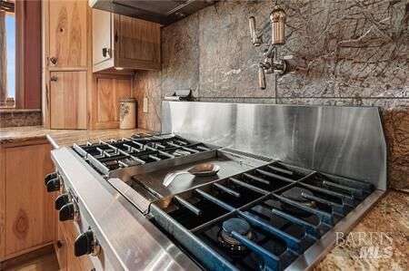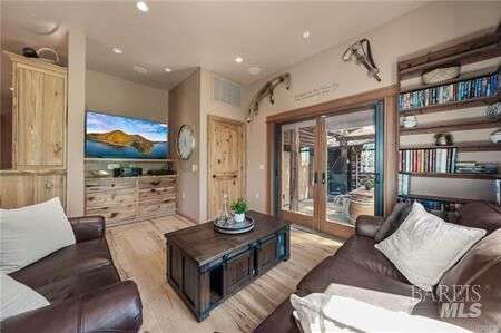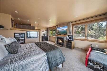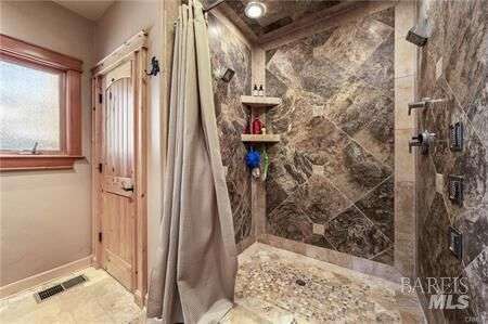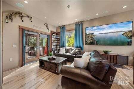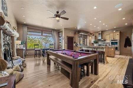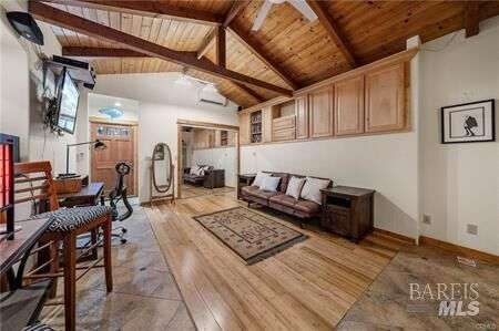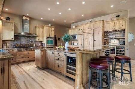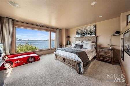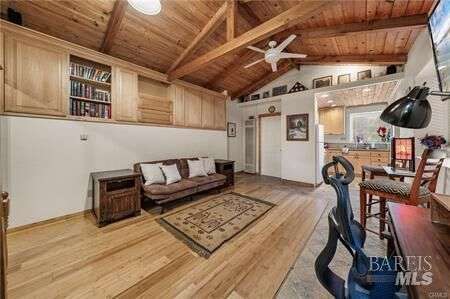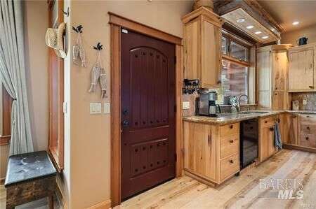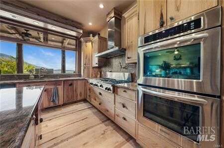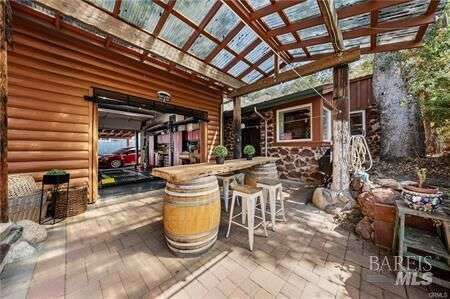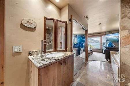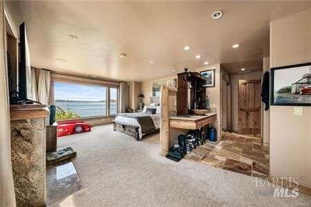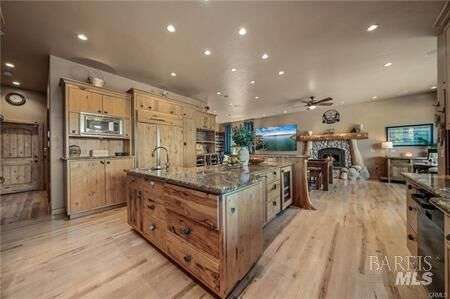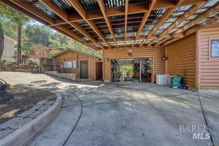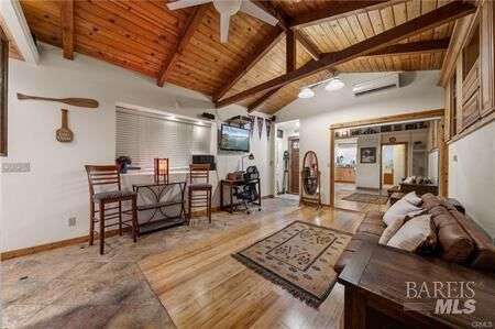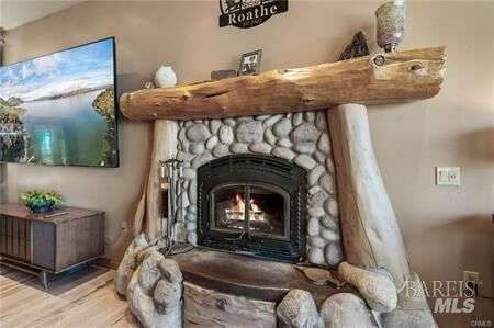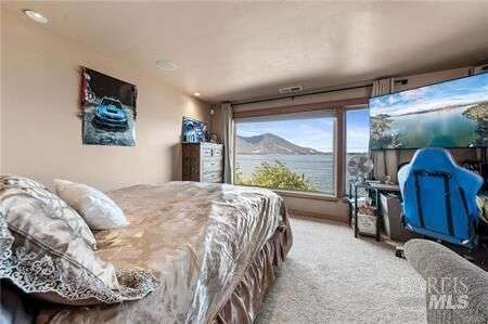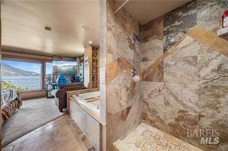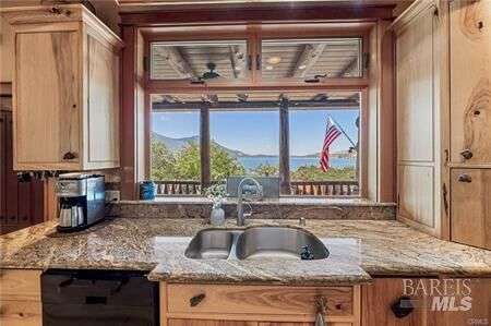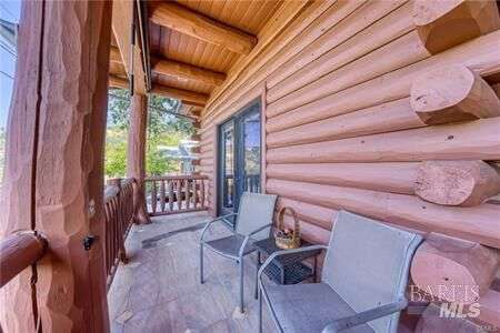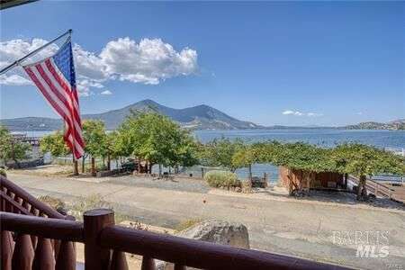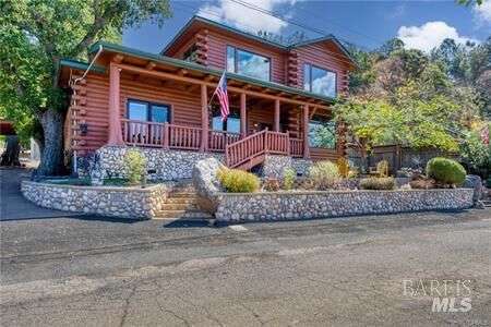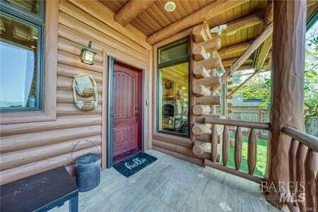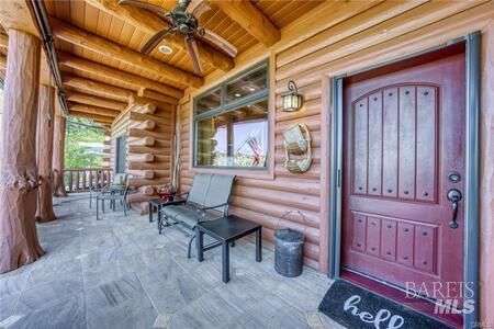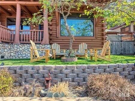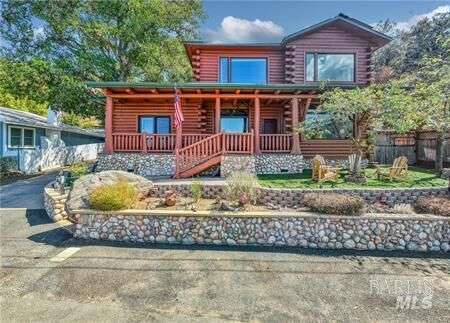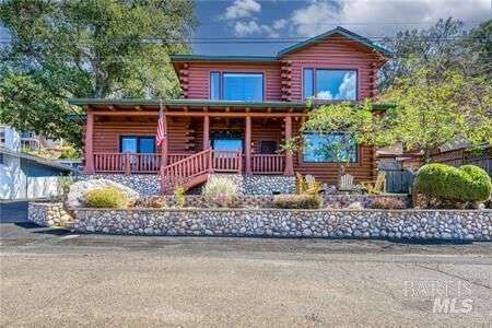 This custom log home, built in 2008, offers luxurious lakefront living with exceptional upgrades. The great room boasts 10-foot ceilings, large picture windows with lake views, hardwood floors, a cobblestone fireplace, and built-in cabinetry, creating a sophisticated, rustic atmosphere. The open-concept kitchen features custom cabinets, a commercial-grade range, built-in fridge, and granite countertops with an island seating eight, all with lake views. The main-floor primary bedroom has an en-suite spa-style bathroom with a custom-tiled walk-in shower, soaking tub, double vanity, and walk-in closet, plus lake-facing access to the front deck. Upstairs, two en-suite bedrooms offer lake views. Bedroom #2 includes a fireplace and custom-tiled shower, while Bedroom #3 has a soaking tub, shower, and two closets. The home includes a two-car garage with built-in storage and a studio unit with a separate entrance, kitchen, bath with laundry, mini-split AC/heat, and its own electric meter. A carport offers covered storage for a boat or car. Lakefront amenities include a private beach, kayak launch, pier, dock, and separate storage for outdoor gear. Located on Silverado Beach, this property offers year-round boating, fishing, and watersports.