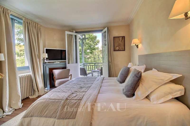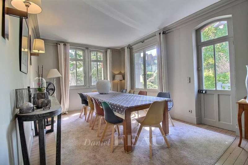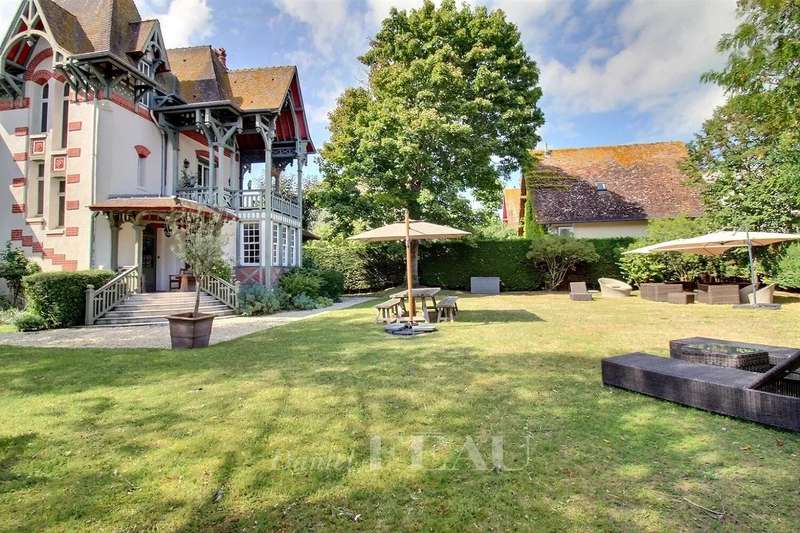 This elegant near 350 sqm period villa oozing with charm is in a prime location just a stone’s throw from the casino and the beach in the heart of Deauville’s prestigious Golden Triangle. It includes two comfortable living/reception rooms, a bright family dining room, and an equipped kitchen with a separate pantry. Upstairs are three elegant bedrooms each with a bath or shower room, one of which opens onto a terrace enjoying an open view of the enclosed 1350 sqm garden. Ideal for children, the top floor comprises two further bedrooms, a bathroom and a spacious recreation room. On a basement with a utility room. A two-storey annex includes a ground-floor garage, a living room, and two bedrooms with a shower room. A building permit has been granted for extension and renovation of the annex, allowing for the creation of a well-being area with a swimming pool and spa. A rare opportunity on the market.