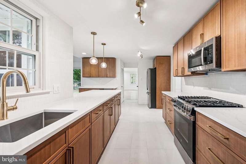 Nestled on a quiet, tree-lined street in the highly sought-after Barclay Farm neighborhood, this beautifully remodeled home blends timeless character with contemporary upgradesall within the heart of Cherry Hills top-rated school district. With quick access to Rt. 295 and just minutes from Philadelphia, convenience meets comfort in this prime location. Step onto the inviting full front porch and into a sun-drenched interior featuring original hardwood floors throughout and abundant natural light. The entry foyer opens to a formal dining room accented with elegant wainscoting and a feature wall, setting the tone for stylish gatherings. The heart of the home is the stunning, updated kitchendesigned with quartz countertops, warm tone oak style cabinetry, a deep farmhouse sink, stainless steel appliances, and a designer white tile backsplash. An extended counter with seating for four and a sideboard buffet makes this space perfect for both casual meals and entertaining. Laundry room located on main floor with door access to the garage. The kitchen flows seamlessly into a spacious living room with a full brick fireplace, accent windows, and sliding glass doors leading to the patio and backyard. A separate gathering room offers additional space to relax, host game nights, or enjoy movie marathons. A main floor bedroom serves as a primary or guest suite, complete with a full bath and stand-up shower. Upper level features a serene primary suite boasts a luxurious contemporary bathroom, walk-in closet, and extra storage. Two additional bedrooms are generously sized and feature recessed lighting throughout. Additional highlights include: - One-car garage - Newer siding front exterior ansd new roof - New water heater - HVAC system approx. 6 years young This move-in-ready gem offers the perfect blend of charm, space, and modern amenities in one of Cherry Hills most beloved communities.