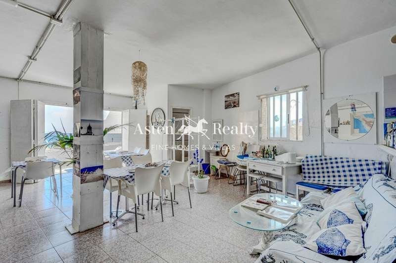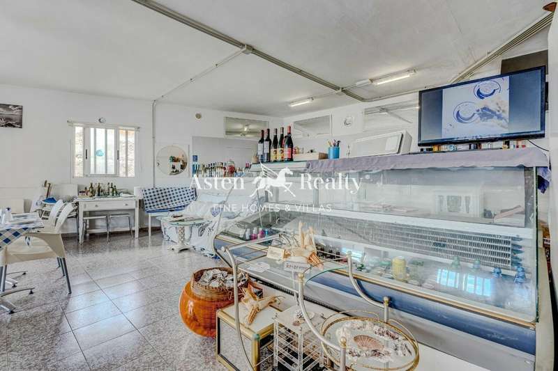 The dining room with 14 tables can accommodate up to 35 people, on the outside there are 2 terraces, one of which is a few meters from the sea. There are also 2 bathrooms and a chillout area with a sofa.