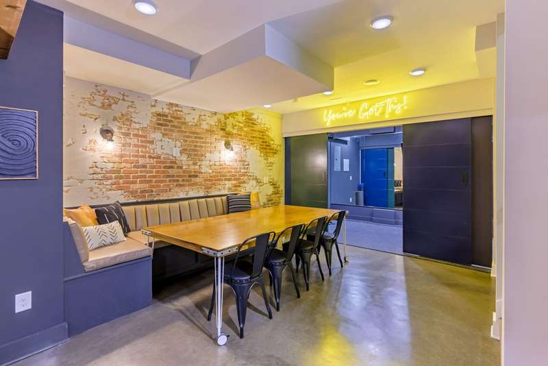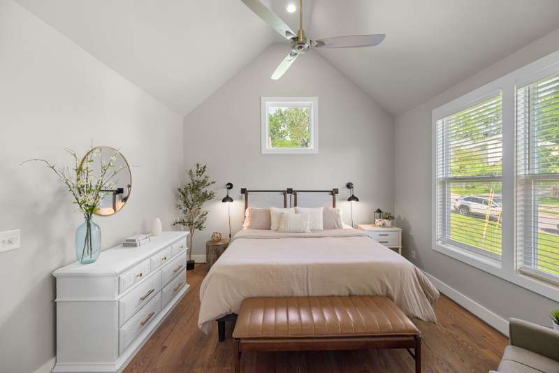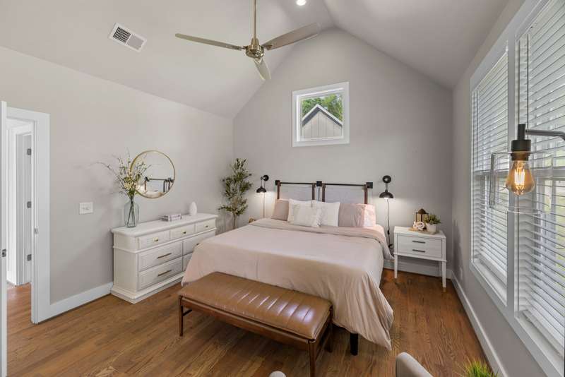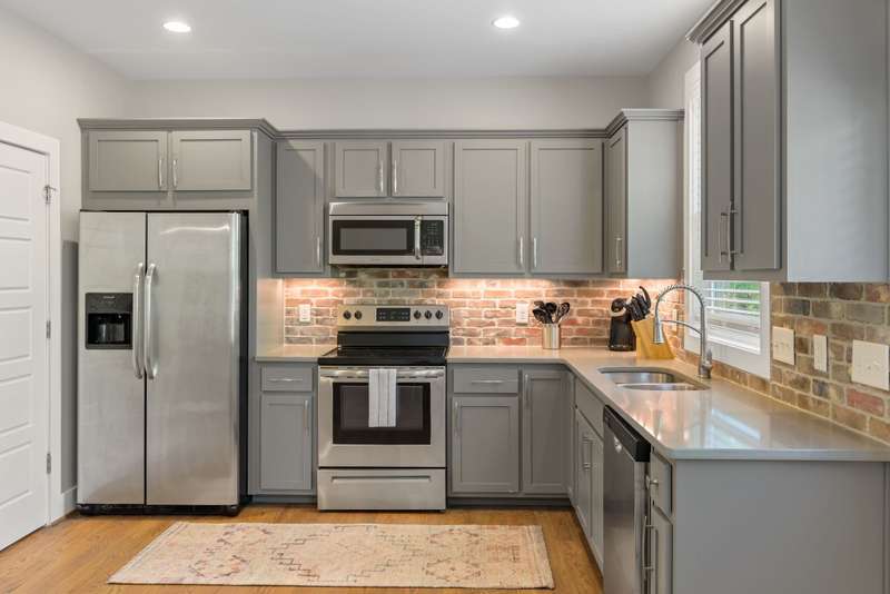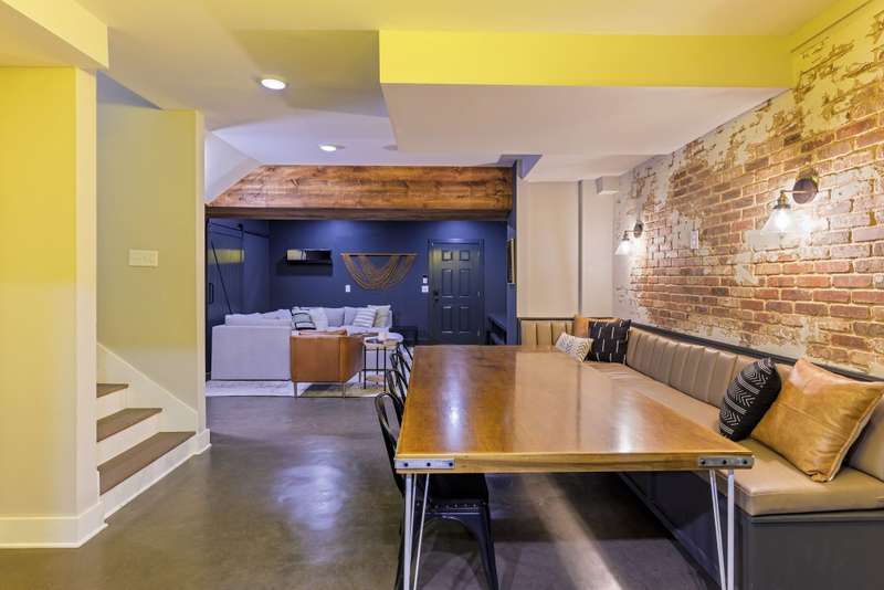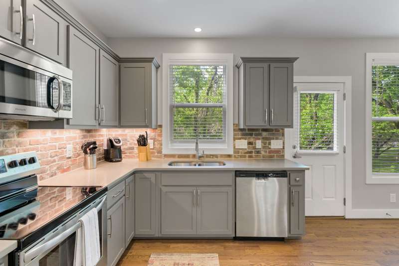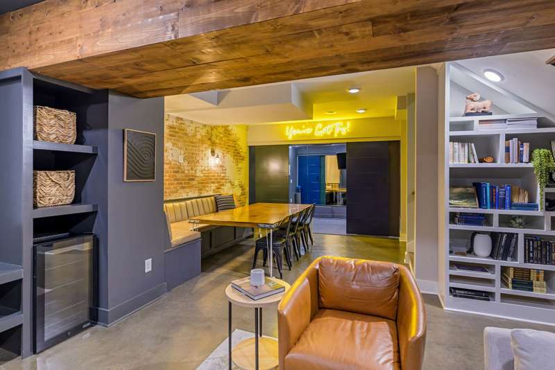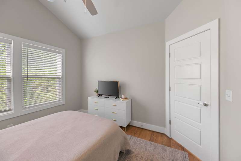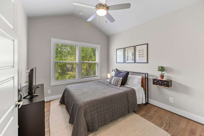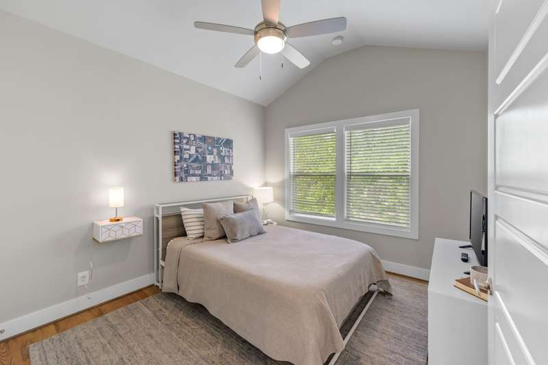 Spacious and stylish, this home features an open floor plan with hardwood floors, large windows, and a stunning double-sided brick fireplace between living and dining areas. The kitchen offers granite countertops, and stainless appliances. Upstairs: a private primary suite with walk-in closet, plus two more bedrooms and full bath. Laundry also on bedrooms level! The finished walk-out basement includes a 17x26 media/game room with built-in banquette and a 12x7 fitness room--ideal for today's lifestyle. Located just minutes from Downtown Nashville, GEODIS Park, and Nolensville Pike dining.