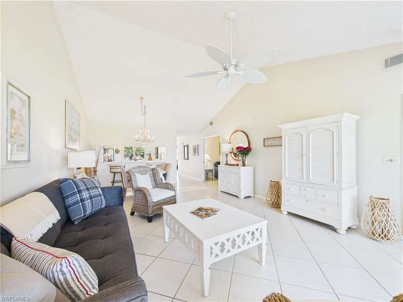 IMMEDIATE GOLF MEMBERSHIP! You'll wake every morning to sweeping golf course and clubhouse views from this beautifully maintained 2 bed, 2 bath + den condo in Chatham at Glen Eagle Golf & Country Club. From its peaceful second-floor location, enjoy a wide panoramic vista over manicured fairways and the elegant clubhouse, best admired from the spacious screened lanai, perfect for morning coffee or sunset relaxation. Inside, soaring ceilings and an open, light-filled layout create an inviting sense of space. Offered turn-key furnished and move-in ready, this condo is the perfect Naples retreat, ideal for full-time living, a seasonal getaway, or investment opportunity. The kitchen flows effortlessly into the dining and living areas, all oriented to showcase those stunning golf course views. A private one-car garage provides convenience, extra storage, and peace of mind, a rare and valuable feature in condo living. As part of the Glen Eagle community, residents enjoy immediate, full golf p