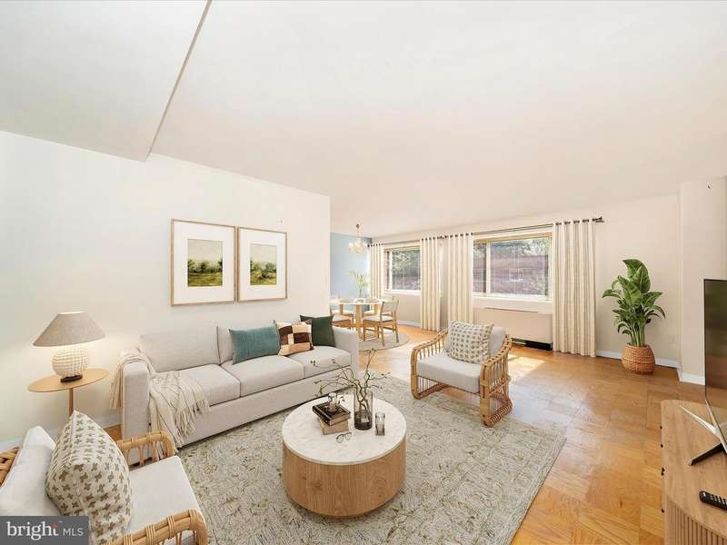 Top Floor Co-op overlooking Tunlaw Road but set back from the street - 900 square feet of bright, spacious and comfortable living. Tasteful foyer entrance to living room with a vista to the dining room and kitchen. Kitchen is also served by a service door for easier access for groceries and other deliveries. Loads of closets for extra storage. One bedroom and one bathroom. Community fitness center, laundry, roof deck, outdoor garden, welcoming lobby and mailroom. Includes all utilities, parking and storage. Recent building updates - newly painted, carpeted and tiled hallways. Refurbished air-conditioning, plumbing and roof. Secure building by FOB and phone with 9:00 a.m. to 5 :00 a.m. (during the week) onsite building manager and a reachable superintendent for emergency needs, Located next to restaurants, supermarkets, public transportation, parks, and playgrounds. Easy reach of metro to uptown and downtown. Located between American and Georgetown universities. Pet friendly - cat or dog.