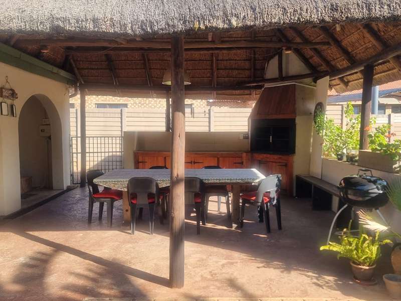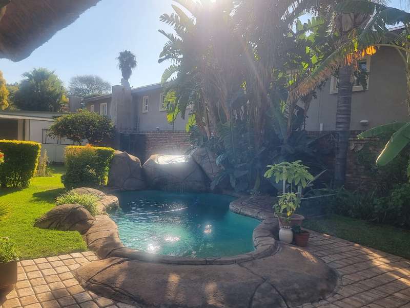 Ideally located on main transport routes and close to schools, shops, and medical facilities, this well-appointed 3-bedroom, 2-bathroom home offers everything a growing family or savvy investor could need. The main house features a lounge, dining room, study, kitchen, and separate laundry, with ample space for comfortable living. Step outside and enjoy the ultimate entertainment setup, an inviting thatch lapa with built-in braai and jacuzzi, overlooking a sparkling swimming pool and large, established garden. The property also boasts a 2-bedroom flatlet with its own kitchen, lounge, and bathroom, perfect for extended family, guests, or rental income. Practical extras include 3 covered carports, a storeroom, and loads of outdoor space on a generous 1276 sqm stand. Well-positioned and packed with potential, this is a must-see for buyers looking for space, flexibility, and lifestyle in a sought-after location.