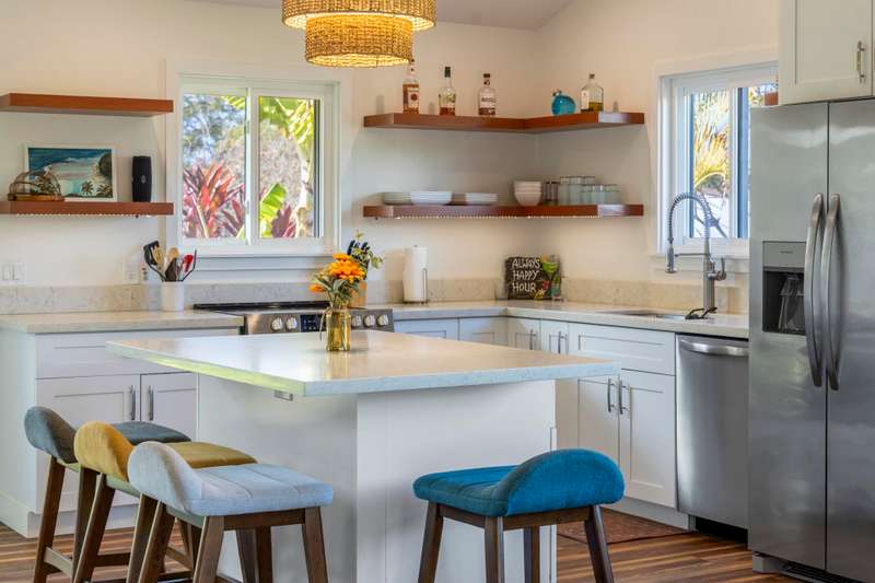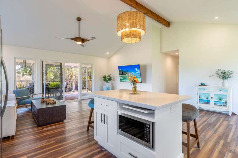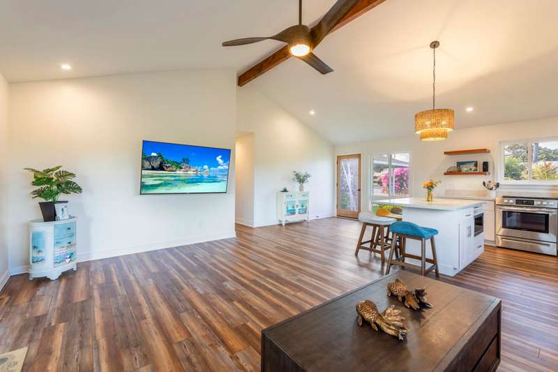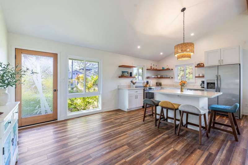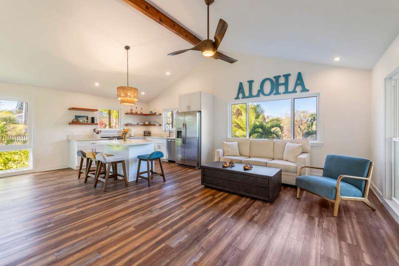 This beautifully remodeled single-level home sits on an oversized lot with room to add a pool, ohana, or detached cottage. The light and bright open-concept floor plan features high ceilings, new windows and doors, and seamless indoor-outdoor living through a sliding door to the expanded deck and covered lanai. Highlights include fully remodeled bathrooms with an expanded primary shower and double vanity, all-new cabinetry, countertops, appliances, recessed and under-cabinet lighting, plus fresh drywall and modern trim finishes throughout. Additional features and upgrades include a two-car carport with storage and laundry room, new irrigation system (4 active zones, pre-installed for 8), new retaining walls, landscaping, privacy fencing, and fresh interior/exterior paint. Conveniently located just blocks from Kukui Mall, Foodland, restaurants, and Maui’s best beaches and parks. Move-in ready with thoughtful upgrades throughout.