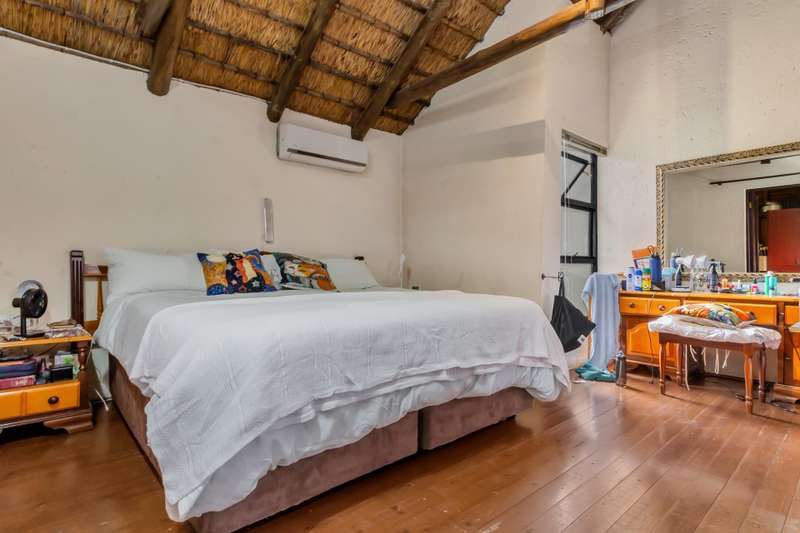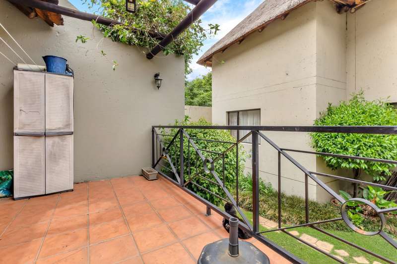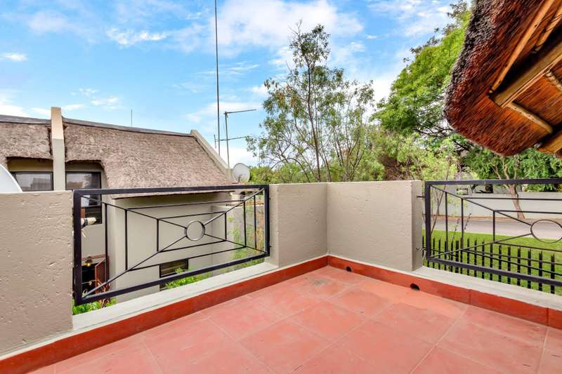 INVITING OFFERS FROM R990 000 OWNER ASKING R1 050 000 , NEGOTIATED UNTIL SOLD Nestled in the serene and sought-after neighborhood of Sharonlea, this charming three-bedroom thatch townhouse offers a unique blend of comfort and rustic elegance. The open-plan lounge and kitchen create a welcoming space, seamlessly flowing onto a private patio, perfect for entertaining or relaxing. The kitchen is fully equipped and boasts ample cupboard space, ensuring functionality and convenience. Downstairs, two well-sized bedrooms share a bathroom with a modern shower. The upper level is a true retreat, featuring the main bedroom with an extended loft ideal for a pajama lounge. This level also offers a spacious full en-suite bathroom with an open-plan design and a dressing room that leads to a private outdoor balcony, ideal for unwinding at the end of the day. Additional features include air conditioning, an undercover parking space, and access to a picturesque river greenbelt area, perfect for dog walks or family picnics. The complex is secure and family-friendly, with 24/7 security guards ensuring peace of mind. This townhouse combines convenience, comfort, and a touch of nature, making it the perfect place to call home. Levies: Levy R2393.02 Reserve fund: R269.52 CSOS: R37.86 Security: R826.78 Sewage: R704.47