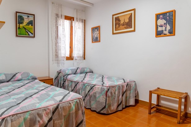 Apartment with terrace 200 meters from Cala Millor beach~~Located on a quiet pedestrian street in Cala Millor, this apartment offers comfort just steps from the sea. It is surrounded by all necessary daily services such as supermarkets, restaurants, public transport, and schools, making it a practical option both as a primary residence or as a second home in a well-connected coastal area with year-round activity.~~With an approximate area of 90 m², the property is on the second floor of a building without a lift. The interior layout features three double bedrooms and two bathrooms, as well as a spacious living-dining room that opens onto a covered terrace with open views of the street. The separate kitchen includes a pantry.~~Outside, there is a gated communal patio on the ground floor for exclusive use by this unit—ideal for storing bicycles or a scooter. The rooftop offers a communal terrace, perfect for drying clothes or sunbathing. Although the building does not have a pool or garage, public parking is available nearby.~~Built in 1965, the property retains its original woodwork and flooring, with single-glazed wooden windows. It is well maintained but requires a complete renovation to update installations and finishes. It includes a hot/cold air pump, electric water heater, and mains gas connection.