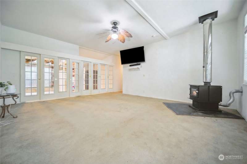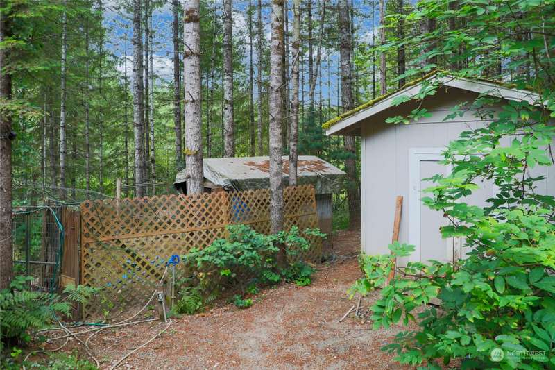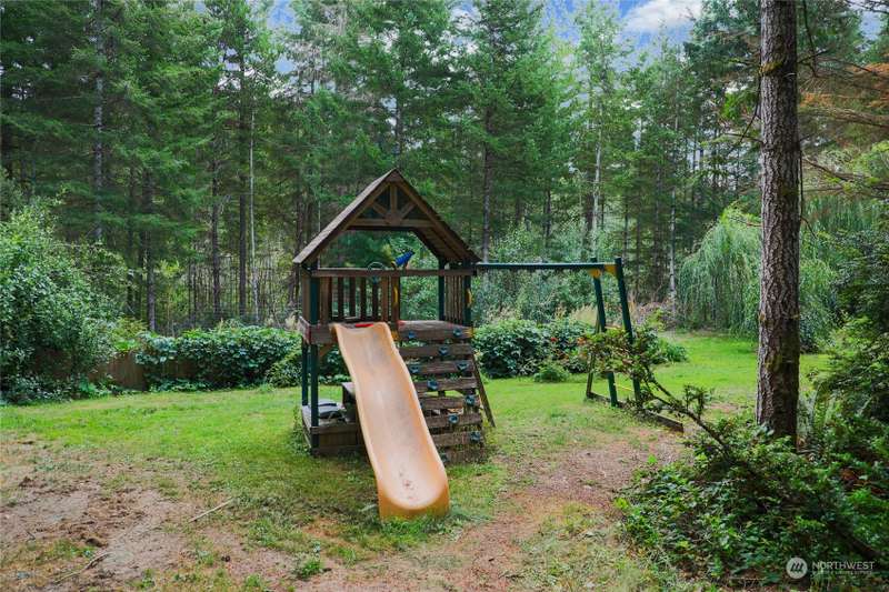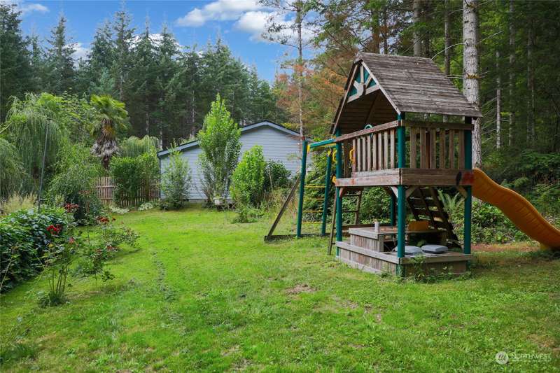 Enter through your private gate with a row of fruit trees on your left, driveway meanders through the property to the to the large 2688 Triple Wide. Custom home with ornate ceilings, wall of glass sliders leads into the living room with a wood stove, enter the dining room through the french doors and be amazed at the propane fireplace and elaborate kitchen. Large primary suite with a separate sitting area or office, walk-in closet and 5 piece primary bath. Newly painted interior and all new carpet this is move in ready. Outside you have a second dwelling with one bedroom and has 2 slides for your overflow of guests. Property has multiple cleared areas bring your imagination so much to think about. Close to Belfair and Twanoh State Park.