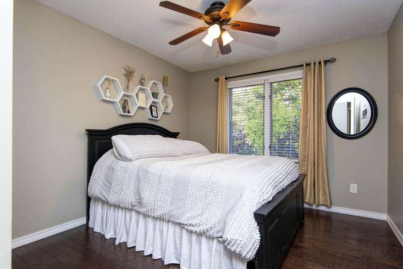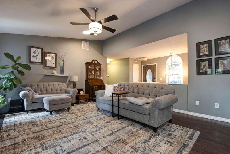 Beautifully maintained 4BR/3BA home with walkout basement and abundant living space. Features hardwood floors, three living areas, and a remodeled primary suite with towel warmer, dual vanities, walk-in closet, and natural stone vanity. Main bath offers a deep jetted tub to relax in. Cozy downstairs media room with projector/screen. Covered deck overlooks a large, landscaped backyard with mature trees, including an apple and peach tree, shed, lean-to, and playhouse. Two-car garage, oversized basement storage room, and laundry hookups on both levels. Hard-wired generator adds peace of mind. A perfect blend of comfort, updates, and space! And short walk or bike ride to the South Creek Greenway Trail.