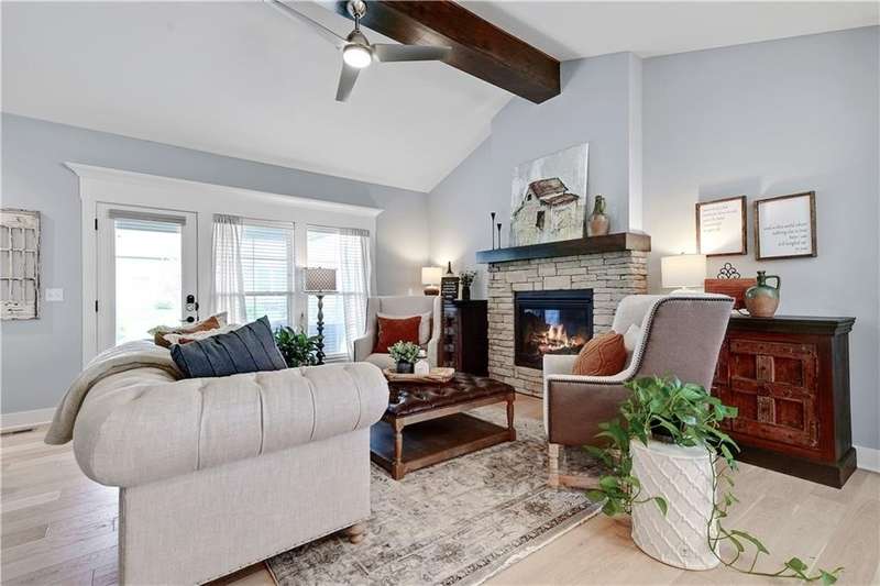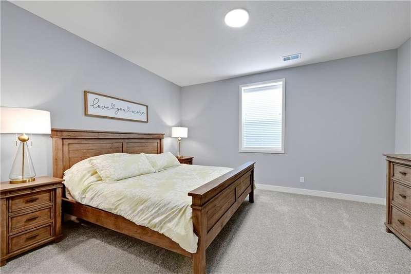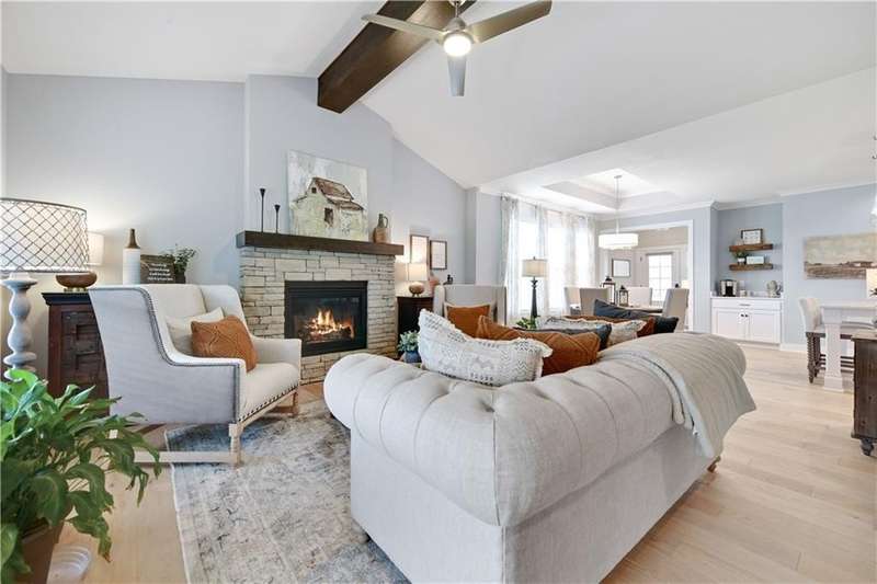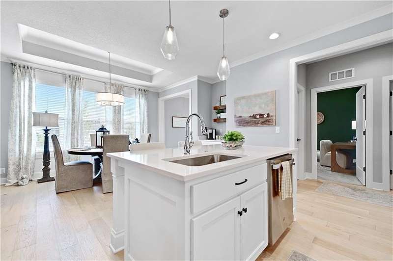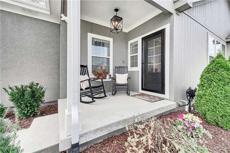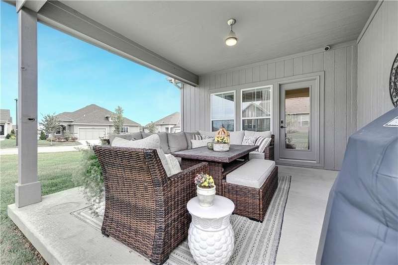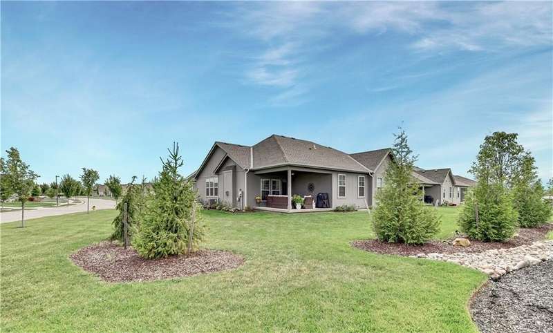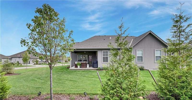 Barely lived in 2-year-old luxury twin villa is available in Bristol Highlands without the wait plus window coverings and car charging outlet in the garage are professionally installed and done for you! With 2,563 sq ft offering a sought-after spacious floor plan with a seperate shower and soaking tub in the primary suite that’s no longer available to build new, you’ll feel the quality and extra space the moment you walk in. with 4 bedrooms, 3 bathrooms, 2-car garage, a private driveway, vaulted great room with stone gas fireplace, wood mantle, and wood beam, a chic kitchen with quartz island, gas cooktop with wood range hood, and a SS refrigerator that stays – this one is truly move-in ready! Perks include a 96% efficiency Lennox furnace with humidifier for comfort and smart energy use, low-E windows, 2-hour firewall with sound proof common wall, plenty of storage in the lower level, and extra space in the garage. The spacious corner lot gives you extra elbow room and privacy, especially on the large covered patio, enhanced by the additional landscaping the owners added for a more secluded, cozy outdoor feel and all construction nearby is completed! Living in Bristol Highlands Villas means maintenance-provided ease with an HOA that includes trash, recycling, lawn care, snow removal, irrigation maintenance, walking trails that wrap the neighborhood and optional membership to the future pool, clubhouse & pickleball courts. A Robinson Julian Development! Prime Lenexa location, close to SMP, Lenexa City Center, golf courses, Lake Lenexa, walking & biking trails, dining options, and De Soto schools. Beautifully finished, thoughtfully upgraded, and ready for its next owner now! Come see how effortlessly your next journey fits here today.