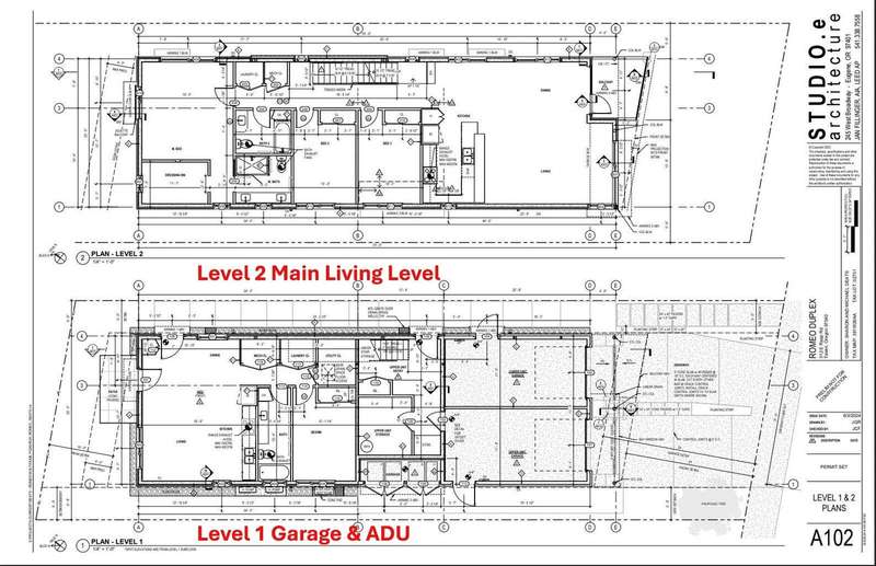 You'll absolutely love this new home in Talent, just minutes from Ashland. Designed & built to exceed energy standards w/ high-end modern living- welcome to the Romeo Project. This property offers a main single-family home with an attached ADU that would easily bring in fantastic income as a rental or the perfect design for a mother-in-law unit. Experience roof top living engineered for a hot tub, garden beds & fantastic views. This home will reach Earth Advantage Platinum status with high-performance doors & windows, an airtight healthy ventilation system, fire-resistant exterior materials, above code insulation, energy efficient HVAC & hot water systems along w setup ready for solar & EVs. Experience comfort year-round w very low utility costs & relish in the modern design boasting a level of urban sophistication that you'll truly appreciate in this one-of-a-kind home. An incredible home to live in & a very solid investment! Lot next door also available for sale as a package deal.