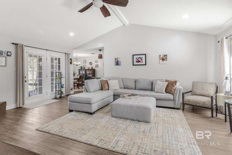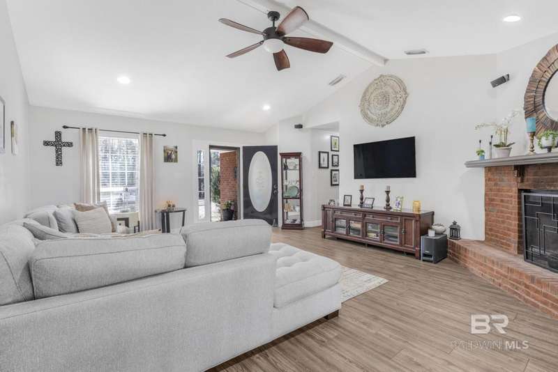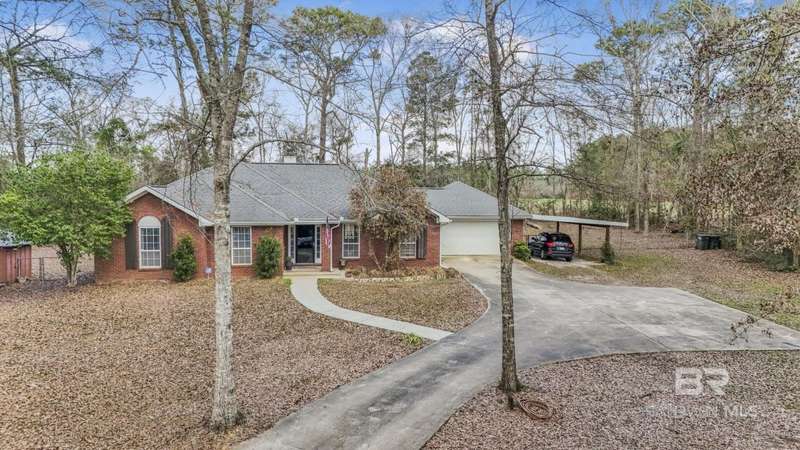 NO HOA! Welcome to this beautifully maintained private retreat nestled on over 2 wooded acres in Loxley, AL. Tucked away at the back of the property, this home is accessed via a long paved driveway, offering privacy and a serene setting surrounded by nature. Inside, you?ll find luxury vinyl plank (LVP) flooring throughout and vaulted ceilings that enhance the spaciousness of the main living area. A wood burning fireplace adds warmth and coziness?perfect for entertaining or relaxing. The kitchen boasts functionality and charm, while the bedrooms provide comfort and privacy. Step outside to enjoy the expansive, fully fenced yard, ideal for pets, gardening, or outdoor activities. This location offers easy access to I-10 making it convenient to Mobile and Pensacola. Fairhope, the Eastern Shore of Mobile Bay, and sugar white sands of the Alabama Gulf Coast beaches are only a short drive away. This home is move-in ready and priced to sell. Buyer to verify all information during due diligence.