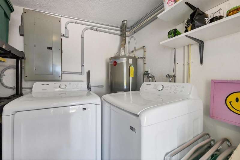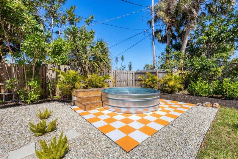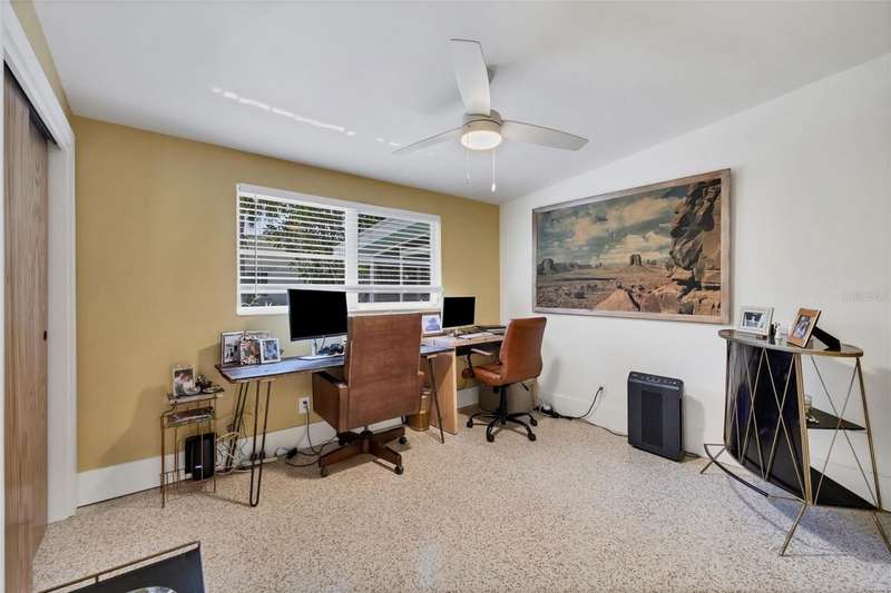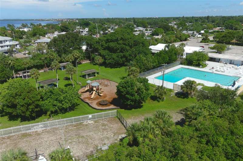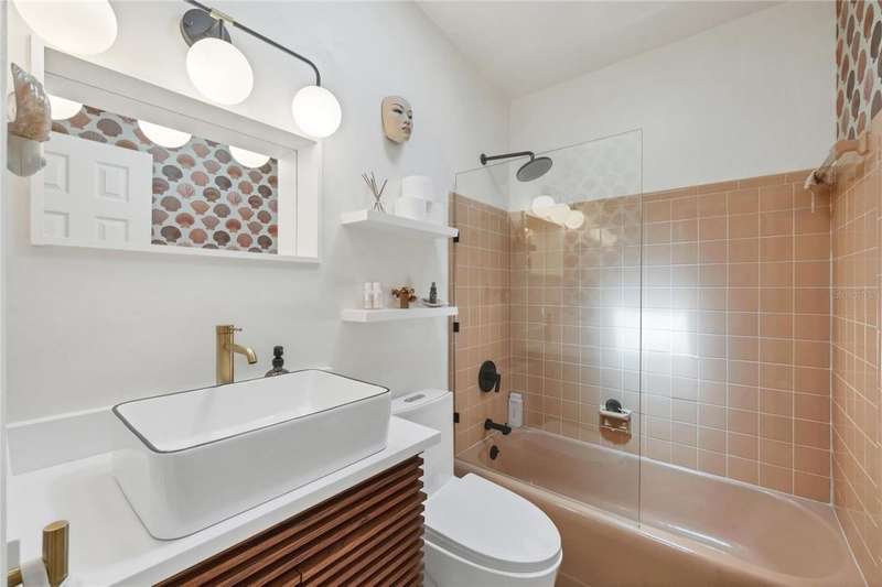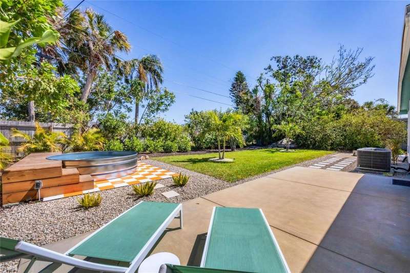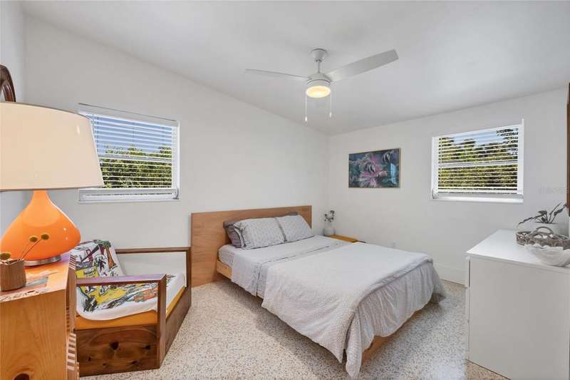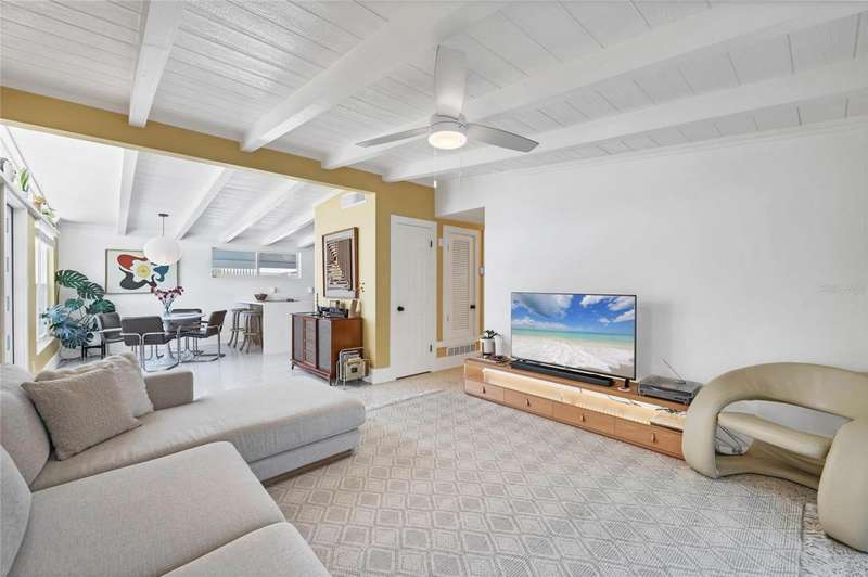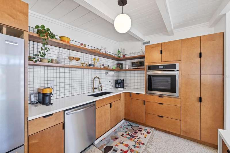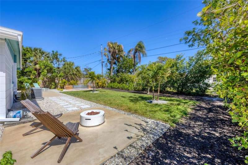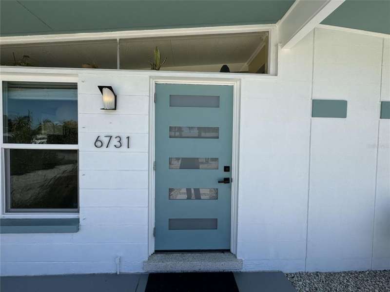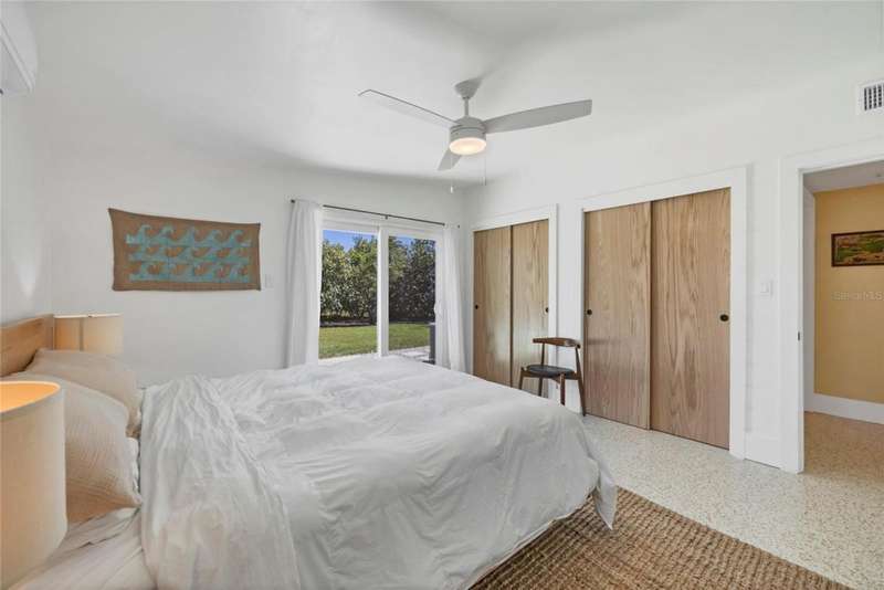 This mid-century gem enjoys nearby Sarasota Bay breezes. Welcome yourself to a tastefully updated & lovingly maintained 3-bedroom 2 full bath West Bradenton home that is sure to please. The sellers have a unique knack for embellishing on the characteristics of an era gone by, starting w/the refinished terrazzo floors & ending w/the beamed & vaulted ceilings above & everything in between. The kitchen was tastefully updated in 2023 w/quartz counters accompanied by a pretty tile backsplash, beautiful wood cabinets, large pantry, stainless appliances & those ever-popular pan drawers. An abundance of storage is found in the lazy Susan corner cabinet as well as the large island which is home to a smooth cooktop w/a warmer burner & plenty of room for bar stools. The dining area is light & bright w/a full wall impact window & is home to a charming hanging retro light. A spacious living room has sliders to an awesome screened lanai that leads outdoors to a well-manicured side & back yard. The rear walkways have been updated w/stone & concrete patios for year-round enjoyment leading to the beautiful backyard w/its lush green grass, a Meyer lemon fruit tree & tropical Christmas palms. Back inside the lucky new owners of this awesome home will enjoy a spacious primary bedroom w/a mini-split AC unit (for those of you who like to sleep w/a blanket) & impact sliding doors that lead to the backyard oasis. The primary bath has a thoughtfully designed d?cor w/spa tile floor & shower wall, step in shower, floating vanity, light up mirror & textured glass door that aligns beautifully with the period style motif. The guest bath enjoys the same mid-century-like genre w/a European style bowl & vanity w/a vessel sink, coordinating w/the original tub which is complimented by an updated shower head & glass. A covered carport is accessed via a large circular driveway for overflow parking & houses a spacious laundry & storage room. The outside front has been given the same attention to detail w/its tropical color palette, retro style textured glass front door, raised house numbers, all encompassed by the beautiful Florida fauna & decorative stone. Other notable features include a 2023 roof, updtd plumbing & electric panel, baseboards & door jambs, 6 panel interior entry doors, gutters, ceiling redone w/newer insulation & faux beams, lighted ceiling fans, dedicated storm plywood for bedroom windows & central AC. Bayshore Gardens enjoys a plethora of amenities including a junior Olympic pool, community clubhouse, baseball field, basketball court, playground, picnic tables, & kayak launch, most of which is included in the annual Recreation District Tax. In addition, there's a huge marina w/boat dock & dry storage for nominal fees compared to commercial spaces. Students enrolled in IMG Academy, SCF, Bayshore High or Elementary or Lee Middle Schools, are about 5-10 minutes away. Approx 10 minutes to SRQ Airport, Ringling Museum & Asolo Repertory Theater, 15 to 30 minutes to sugary sand beaches, UTC Mall, St. Armand's Circle, restaurants, houses of worship, theaters including live plays, boating, golfing, fishing, rowing & sports teams incldg springtime professional baseball, & polo matches. Come enjoy the ambiance of this wonderfully updated period style home before it is gone.
