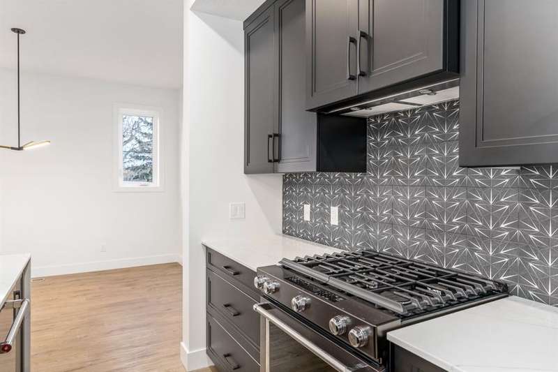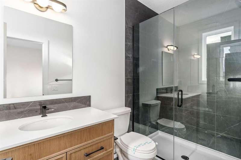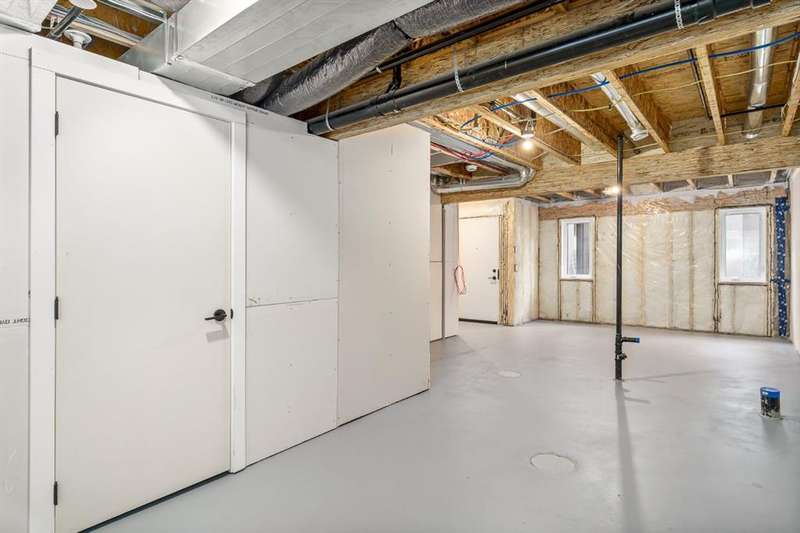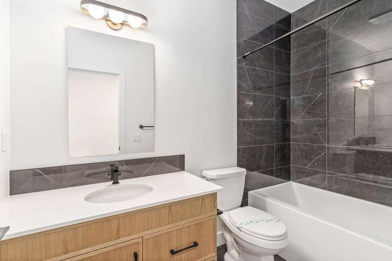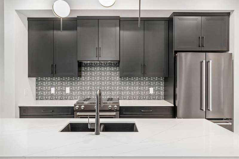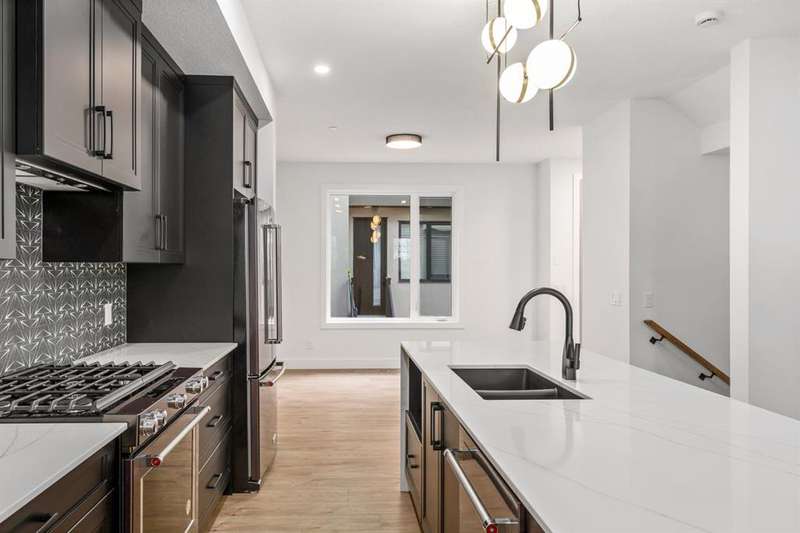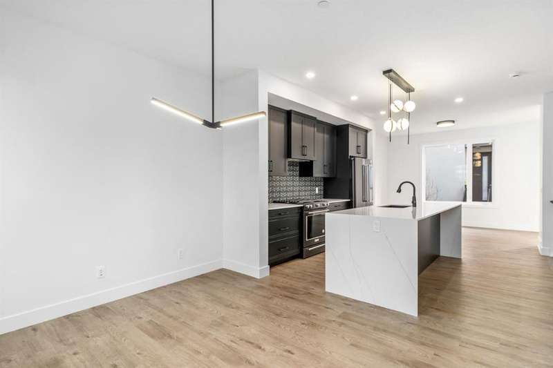 *Builder Incentive to cover all condo fees for first year* This modern townhouse embodies the ideal inner city lifestyle. Constructed by highly acclaimed builder Crystal Creek Homes, this meticulous residence is a testament to keen craftsmanship and spares no details. Luxury vinyl plank flooring, knockdown textured ceilings, and designer light fixtures are merely a few of the elements embedded throughout that truly elevate this home. Enter the impressive foyer and into expansive 9' ceilings, with huge south facing triple-glazed argon fill windows illuminating the living room and adjacent dining area. An open layout leads into the beautifully adorned kitchen, equipped with black stainless steel appliances, complementing black hardware, and geometric tiled backsplash. Quartz countertops, sleek dark cabinetry and a waterfall island with a Blanco Silgranit undermount sink seamlessly create the perfect environment for gastronomy enthusiasts looking to refine their technique, and host intimate gatherings with loved ones. A backyard outdoor amenity space is the opportune addition for summer evening BBQs or to simply enjoy a moment of fresh air. Tucked at the rear is the polished powder room with a highly efficient WaterSense toilet and undermount sink. Ascend the black metal spindled staircase with a durable shaker oak handrail and explore two palatial bedrooms, each with their own four piece ensuite bathrooms embellished with elegant quartz countertops, undermount sinks and wall tile detailing on the bathtub/shower surround all the way up to the ceiling. The primary bedroom includes a spacious walk-in-closet, the perfect accompaniment to the conveniently located stackable front load steam washer and dryer, injecting practicality and comfort into this luxurious offering. Escape to the third level loft, a thoughtfully curated ambience to unwind or entertain. With a unique multi-use area that can be easily converted into a family room, office, or bar/lounge, additional powder room, and exclusive rooftop patio that offers peeks of the mountains to the west. The undeveloped basement is as spacious as it is versatile, awaiting your personal customizations and individual flare to transform it from the existing sweeping storage space and executing your creative vision. Intricate upgrades include a High Efficiency Two-Stage furnace, Ecobee5 Smart Thermostat, active HRV system, as well as spray foaming of all cantilevers, rim joists and window openings for enhanced insulation. Enjoy all of the perks that come with an inner city townhome lifestyle, including the favourably located garage steps away from your front door, quick commuting times, along with the bonus of having exterior maintenance taken care of for you. Set against the vibrant amenities and attractions found within Marda Loop, this home provides a remarkable opportunity to pamper yourself daily, all while living in a desirable and energetic community centrally positioned with quick access the rest of the city.