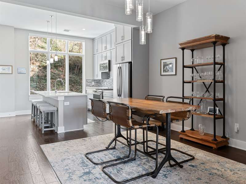 Experience the epitome of modern urban living in this stunning 3-bedroom, 3.5-bathroom townhome in the heart of downtown Asheville. Designed with sleek contemporary architecture, this exquisite residence features expansive windows that flood the space with natural light, soaring 10-foot ceilings, and a thoughtfully designed open-concept main living area. Every bedroom is a private retreat, complete with en-suite bathrooms, offering both luxury and comfort. The three-level interior is complemented by a huge, private rooftop terrace, perfect for entertaining or unwinding under the stars, with gas hookups for grill and firepit. For ultimate convenience, enjoy the attached two-car garage and the option for a private elevator. Nestled in an unbeatable location, just one block from the vibrant Brewery District, McCormick Field, and mere moments away from the charm & culture of downtown Asheville. (not in a flood zone)