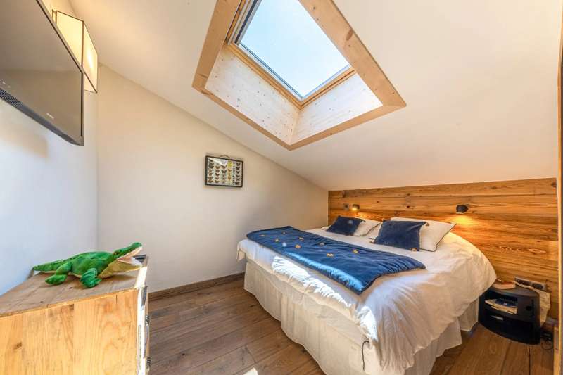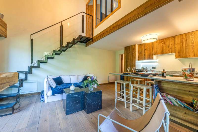Located in the Rochebrune area, this apartment sits on the first and top floor of a chalet-style residence. It features a bright living space with a lounge area, fully equipped kitchen, fireplace, and access to an L-shaped terrace facing West. The property includes an entrance hall with separate WC, a first children's bedroom with bunk beds and an adjoining shower room, a second double bedroom with access to a South-West-facing L-shaped terrace and a second shower room, as well as a third double bedroom located on the mezzanine level. A large cellar and an underground parking space are included in the sale. The residence offers a heated outdoor swimming pool in summer and outdoor parking spaces. Subject to co-ownership status – 82 units. No ongoing legal proceedings. Information regarding potential risks to which this property is exposed is available on the website: www.georisques.gouv.fr