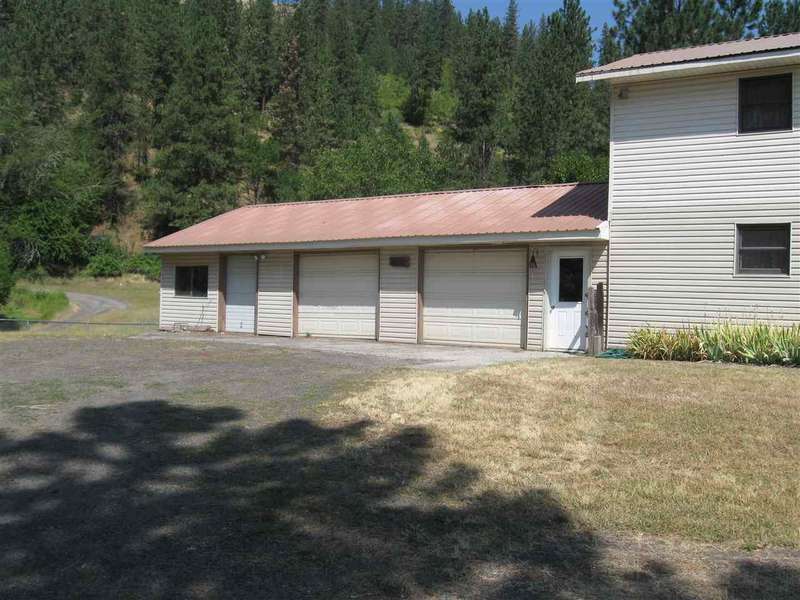 Nice well maintained family home with acreage. Enjoy the view of the Clearwater River and canyon from deck. Fruit trees provides shade and six foot chain link fence around large yard for security. Private pond, developed spring and well for plenty of water for home and irrigation. Pole barn for animals. Two car garage with workshop. Large pine trees across acreage adds privacy just a few miles from town. Deer and turkeys can be seen on the property daily.
