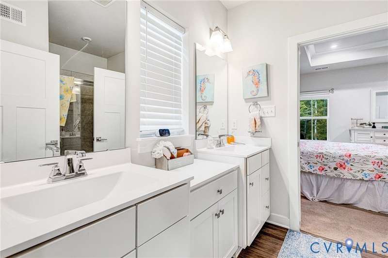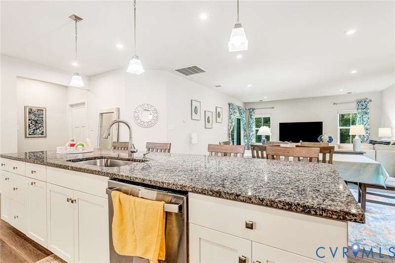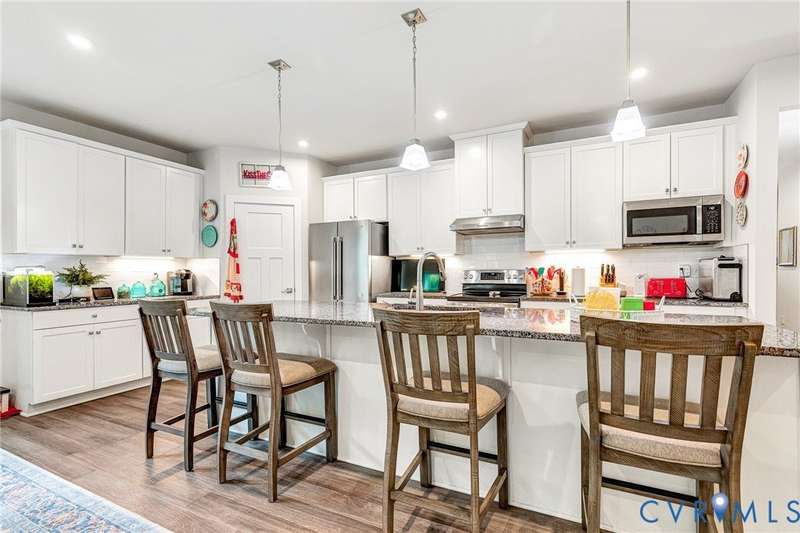 Welcome home to this Charming Craftsman Style Ranch conveniently located in the no maintenance 55+ Community of Britlyn. This spacious home offers almost 2,700 square feet, 4 bedrooms and 3 full baths as well as a large covered rear porch, paver patio and fenced yard backing to woods. Upon entry, you will be welcomed with Luxury Vinyl Plank flooring throughout the first level. The gourmet kitchen has Granite countertops, tile backsplash, a large island with breakfast bar seating for five, soft close cabinets, stainless steel appliances, double oven, walk-in pantry, and pendant and recessed lights. There is a seamless transition into the dining area and family room, which has enough space to entertain while still feeling cozy. The owner's suite is a true retreat offering a tray ceiling with crown molding, recessed lights, walk-in closet, an en-suite bath with dual vanity and shower. Upstairs boasts an open loft area, the 2nd bedroom with an en-suite full bath with single vanity and tub/shower combo plus a walk-in attic with plenty of storage space. The 3rd and 4th bedrooms are on the first level and include recessed lights, large closets and LVP floors. Other notable features include plantation blinds throughout, electric car charger, two car attached garage, double width concrete drive, walk in attic, natural gas heat/central air, and vinyl siding and windows. Enjoy relaxing in the evenings on the rear covered porch or grilling on the rear patio overlooking your private rear lot. This is a truly a must see!