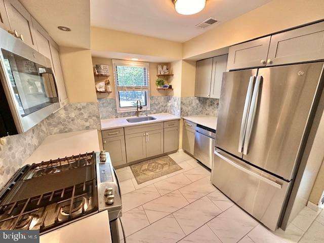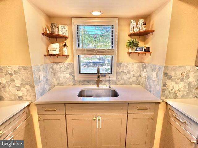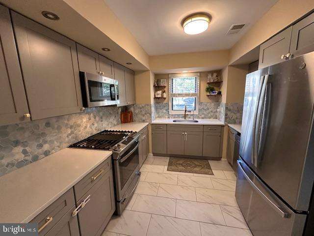 This Beautiful 2 bed 2.5 Bath Townhouse in Holmdel's Fox Chase has a Contemporary Feel with overlook to lower level with open layout*New Kitchen with Quartz Counter,Stainless Steel Appliances,Grey cabinets contrast the Tile Floor perfectly with a hexagon marble Backsplash*Spacious Family Rm with High ceiling,New Accent Wall with Box Molding,Vinyl Floor and the Large rectangular Window baths the room in sunlight*Sliders to Trex Deck facing the privacy of Trees*Upper Level has 2 Large Bedrooms-vinyl floors,recessed lights- each with it's own Bath*Master redone with custom tile,Dual sink quartz Vanity,Brass Fixtures*Plenty of Open Parking for Guests next to open grassy common area*Great Location between rt 35 and 36 and just minutes to GSP and Beaches