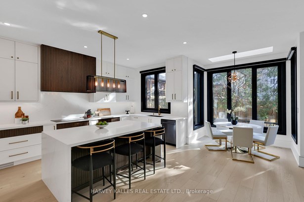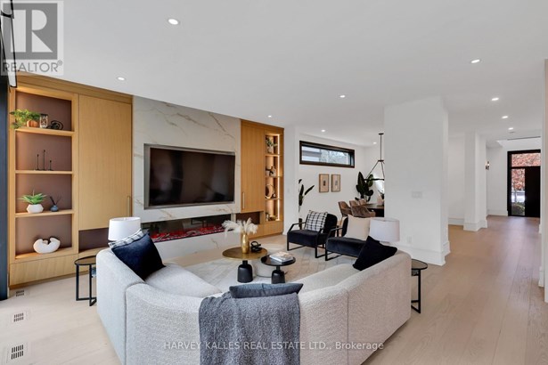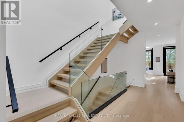 In The Heart Of Coveted Lytton Park, This Newly Completed Contemporary Residence Stands As A Rare Synthesis Of Design Integrity, Environmental Consciousness, And Refined Urban Living, Conceived With An Almost Obsessive Dedication To Sustainable Building Principles, Offering A Standard Of Quietness, Comfort, And Operational Efficiency That Separates It Entirely From Conventional New Construction, Featuring A Façade Of Hand Selected Indiana Limestone Front And Back That Anchors The Architecture With Natural Permanence And Introduces An Interior Defined By Volume And Light, Where A Dramatic Two Storey Atrium Creates A Gallery Like Moment Of Vertical Space, Double Nine Foot Doors Reveal A Private Sculptural Home Office, And The Main Level Unfolds As A Singular Open Concept Environment With Dining, Family Living, And A Chef's Kitchen Framed By Exceptional Millwork, A Walk In Pantry, And Seamless Access To A Mudroom And Garage, While The Second Level Reveals A Boutique Hotel Inspired Primary Suite With A Spa Ensuite, Generous Walk In Shower, Freestanding Tub, And Dramatic Dressing Area, Alongside Thoughtfully Designed Secondary Bedrooms Each With Its Own Bathroom, And The Fully Finished Walk Up Lower Level Extends The Lifestyle Offering With A Recreation And Games Area, Private Theatre, And Nanny Or Guest Suite, Totaling Five Bedrooms And Five Bathrooms To Accommodate Evolving Family Needs, All Complemented By A Quiet Low Maintenance Backyard With Rough Ins For Heated Driveway And Walkway, And Positioned Within The Sought After Allenby School Catchment And Near Toronto's Top Private Schools, Delivering A Future Forward Expression Of Sustainability, Craftsmanship, And Architectural Intention That Defines Elevated Effortless And Exceptionally Rare Green Living.