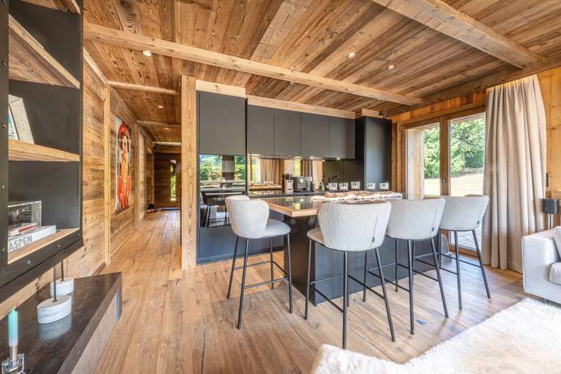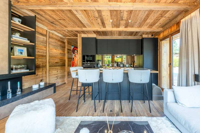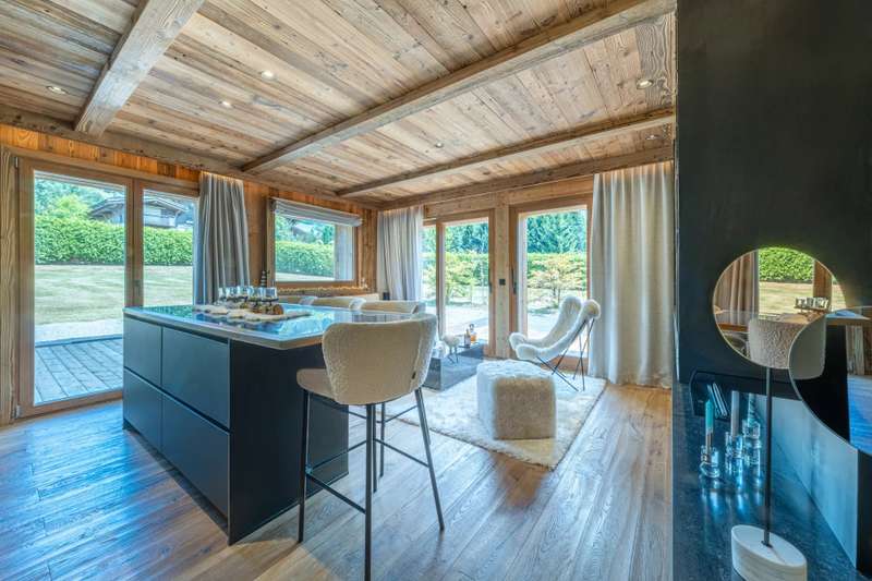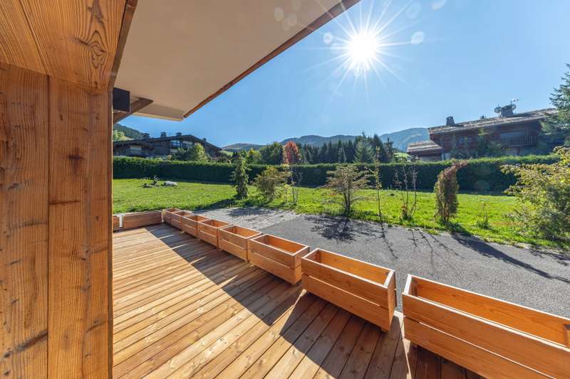 In the heart of Mont d’Arbois, just steps from the golf course and ski slopes, the ISKEN apartment is located on the ground floor of a newly built, high-end chalet-style condominium completed in 2024. With its independent entrance, this apartment offers enhanced privacy and the feel of a private chalet. One of its main features is a large L-shaped private terrace, facing south and northeast, extending from the living area to the master bedroom, offering excellent natural light and unobstructed mountain views. The apartment includes an entrance with storage, a children’s bedroom with bunk beds, a desk and storage, a separate toilet, a bathroom with double sink, a double bedroom with storage and direct access to the terrace, and a tastefully decorated living area. The latter features a fully equipped kitchen, a lounge with custom-made TV cabinet and ample storage, and a state-of-the-art bioethanol fireplace. The entire living space opens onto the terrace. Additional amenities: a large cellar of approximately 12 sqm with washing machine connections, a ski locker, and a parking space under a carport. An ideal property as a second home to fully enjoy Megève year-round. Please note: the terrace is not yet finished. Vegetation (fir trees in planters) will be added along the entire length to preserve privacy. Subject to the condominium status – 4 units. No ongoing legal procedures. Information about the risks to which this property is exposed is available at: www.georisques.gouv.fr