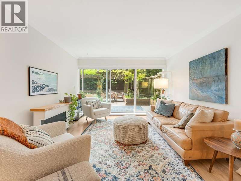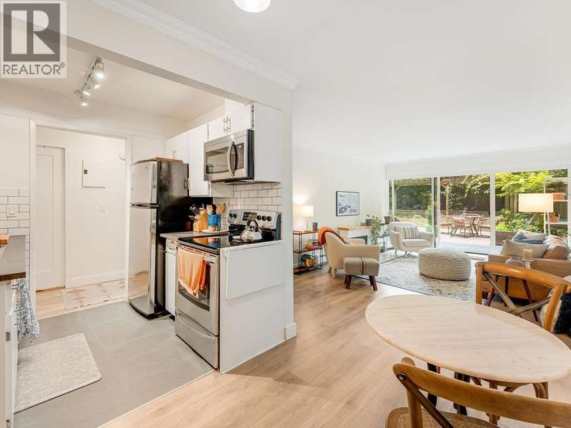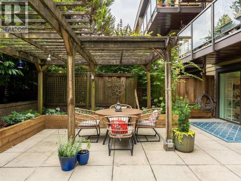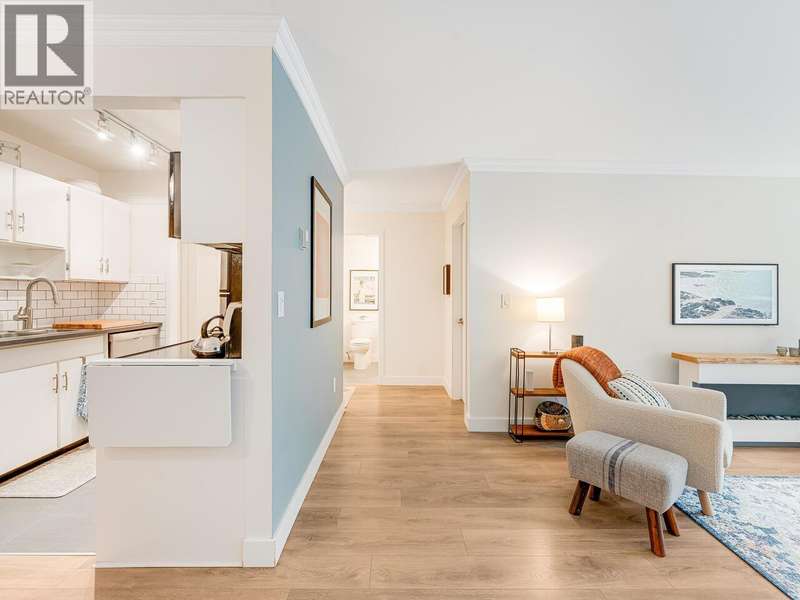 This inviting home at the Landmark Mariner is a pleasure to show. Updated throughout, it´s both beautiful & comfortable. With a wall of windows the light is amazing & the sliding door onto the oversized private patio extends your living area, looking & feeling extra spacious. Indoor/outdoor living can be enjoyed throughout the year with this partially covered outdoor sanctuary. New planters, thoughtfully landscaped & so, so quiet. The building recently completed their exterior renewal with new windows, balconies & rain screen. A well run, friendly place in a central location, with easy access to downtown, the north shore & highway. Lots of restaurants & amenities nearby too. Pets welcome, storage & parking. This unit is one of the few with in-suite laundry. (id:58403)