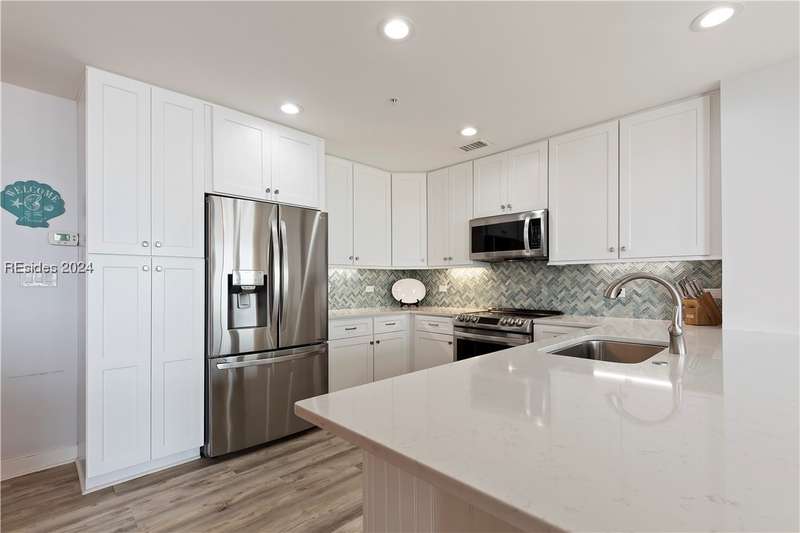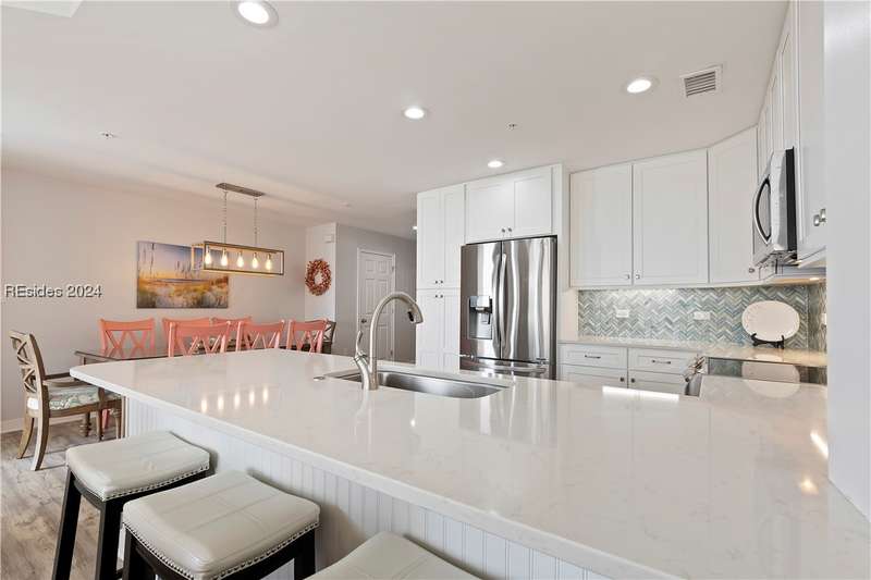 Direct oceanfront 3BR 2BA 4th floor villa fully renovated in 2020 and located on Hilton Head Island in the incredible Sea Crest Resort, boasting some of the island's most captivating views! Beautifully remodeled featuring bright, sophisticated beach color pallet; LVP throughout; kitchen w/ new white, floor to ceiling cabinets, stainless appliances; beautifully tiled bathrooms, custom lighting, & more! One bedroom bath fully wheelchair (max width 26") accessible. Prime location in heart of Coligny/Forest Beach area w/ indoor gym, pool, & oceanfront pools. Island retreat presents amazing opportunity as rental investment or 2nd home.