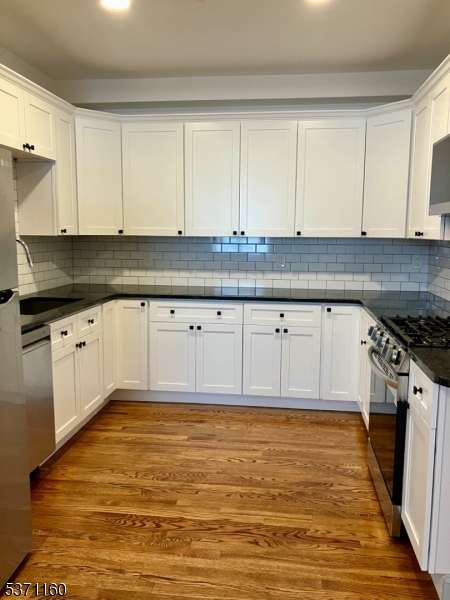 RENOVATED with MODERN FLAIR plus Freshly painted equals MOVE-IN-READY! This one bedroom FIRST floor apartment is not to be missed...available for IMMEDIATE occupancy! Step up from your private entrance door into an OPEN floor plan with gleaming HARDWOOD floors. The new GORGEOUS KIT has tons of cabinets, GRANITE counters and all SS appliances...the STYLISH bath features SLEEK, clean lines with an oversized shower. Highlights include TWO large double closets in the primary bedroom, window blinds, recessed lights and convenient STACKABLE washer/dryer in the unit. Appreciate the convenience of TWO assigned PARKING spaces. Please note: absolutely NO pets...NON-smoking apartment...VERY convenient location...close to shopping, restaurants and transportation. Don't miss this opportunity!