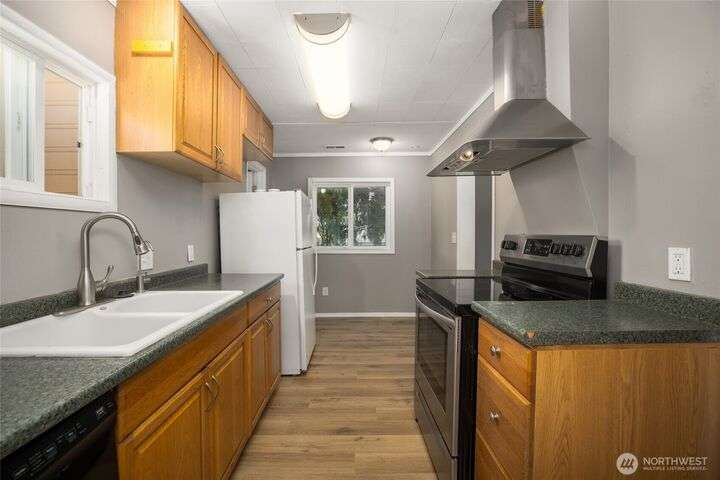 Cute remodeled 2 bedroom and 3/4 bath with shower Bungalow close to the heart of Sedro-Woolley on a large corner lot. All appliances stay! This move in ready home is fully fenced, alley access and room for plenty of parking out front. Gravel and concrete pads in the back for you to place your shed or play equipment and so much more room for gardening and entertaining.
