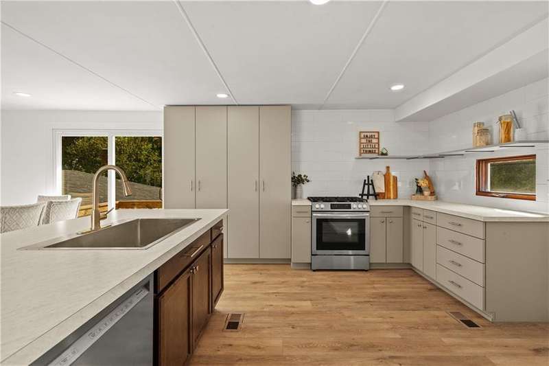 Completely Renovated 3 Bedroom, 2 Bath Home with a 4th non-conforming bedroom in the walkout basement & Over 1/2 acre fenced yard. This beautiful home offers modern finishes and plenty of space inside and out. The all-new kitchen features brand-new cabinets, countertops, flooring, and stainless steel appliances. Fresh exterior paint, new exterior doors, and a newly built back deck add to the homes curb appeal.The main bedroom includes an en suite bath with a new double vanity and tub/shower combo. The hall bathroom is also fully updated with a new tub and ceramic tile surround.The brand-new finished basement provides a fourth non-conforming bedroom, a second family room, and convenient walkout access through the oversized garage. The garage offers abundant room for hobbies, storage, and even a loft area.Outside, enjoy a fully fenced acre lot with mature shade trees and a large, level yard perfect for outdoor activities. The backyard also features a storage shed and direct access to city-owned green space. The in-ground needs a liner but is set in show stopping space with an outlet and pad for a hot tub.