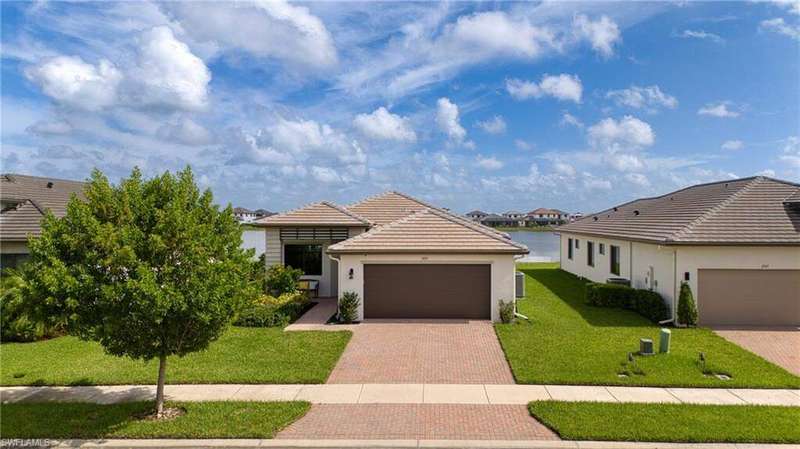 Step into a home with a 5.2% ASSUMABLE MORTGAGE RATE and save big!!!. Step into timeless elegance in the heart of Maple Ridge at Ave Maria! This beautifully appointed 3-bedroom plus den, 3-bath, 2 car-garage, with nearly 1,950 Sq. ft. of living space single-family home offers the perfect blend of comfort and style. With tile flooring throughout and an abundance of natural light, the open and airy floor plan is both inviting and functional. Just off the entryway, French doors welcome you into a versatile den-ideal for a home office or reading nook. The well-equipped kitchen features quartz countertops, stainless steel appliances, a walk-in pantry, garbage disposal, and plenty of cabinetry and prep space for all your culinary needs. Flowing effortlessly from the kitchen, the spacious dining and living areas open up to a screened lanai overlooking serene and vast lake views-perfect for relaxing or entertaining. The primary suite includes a double vanity, water closet, and a stunning walk-in shower, offering a spa-like escape. Two guest bedrooms are tucked away with access to their own jack and jill full bathrooms, providing privacy and convenience for family and visitors alike. Additional highlights include a dedicated laundry room with utility sink, a 2-car garage, and proximity to both the clubhouse and vibrant Downtown Ave Maria's dining and shopping. The clubhouse amenities are world class with its community pool, billiards, meeting rooms, event hall, sauna, playground, Imagine your dream pool in the backyard-this home is ready for it!