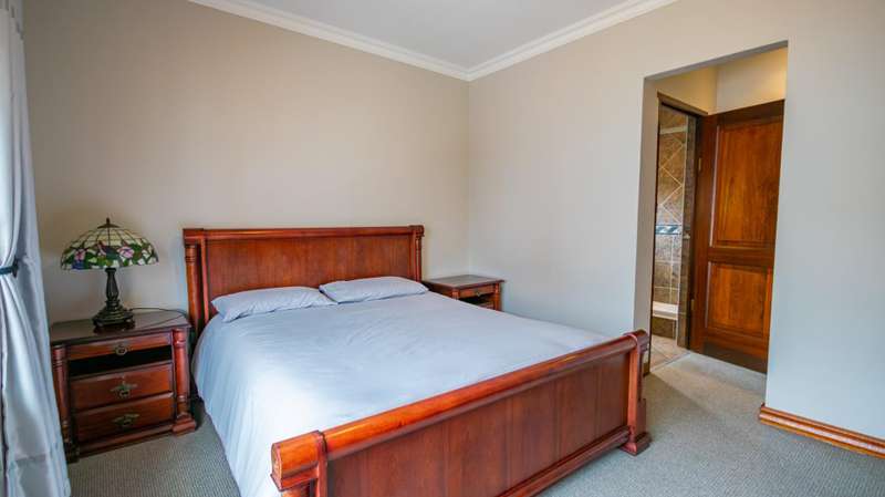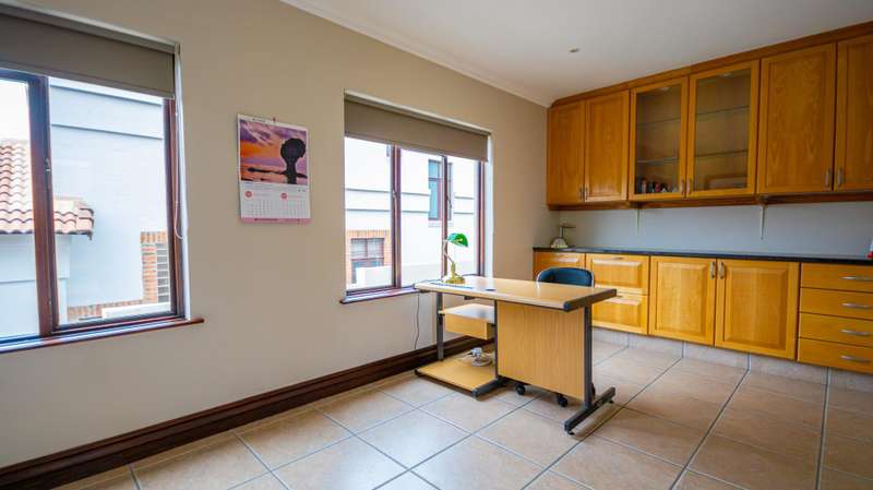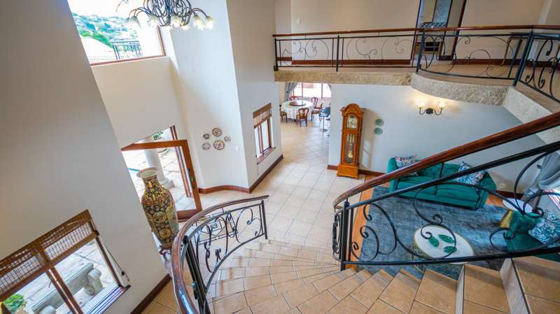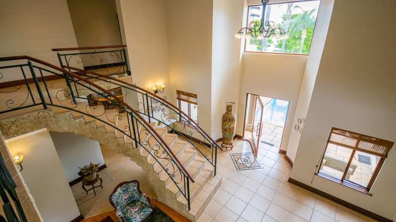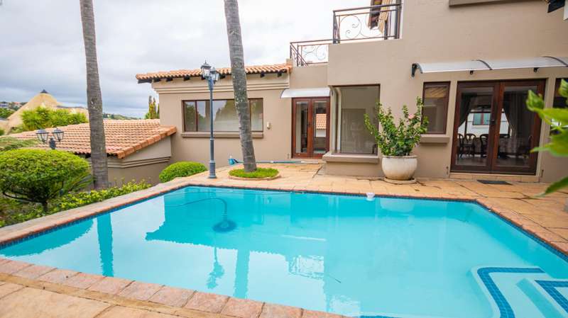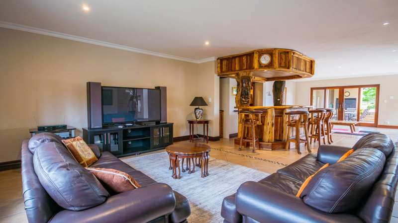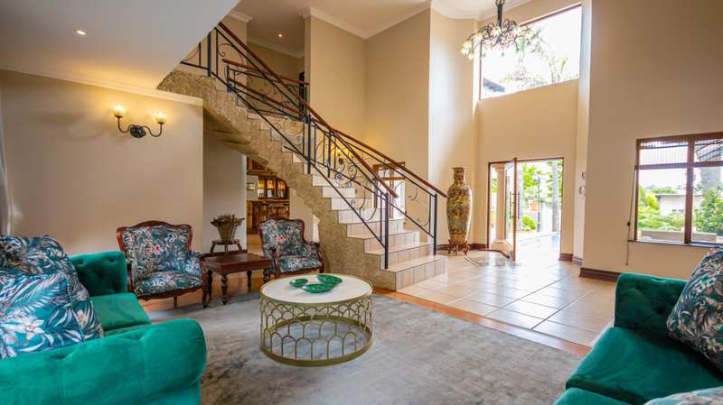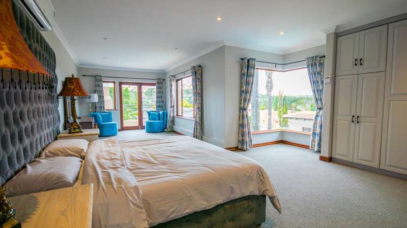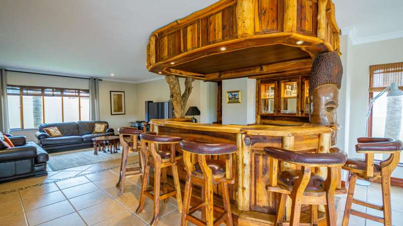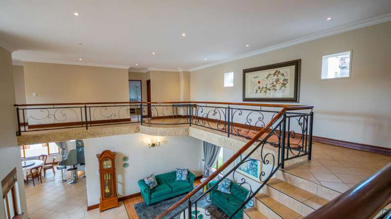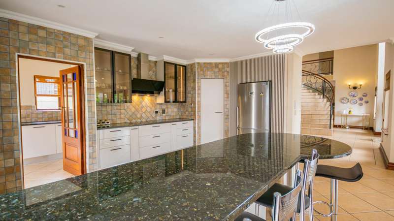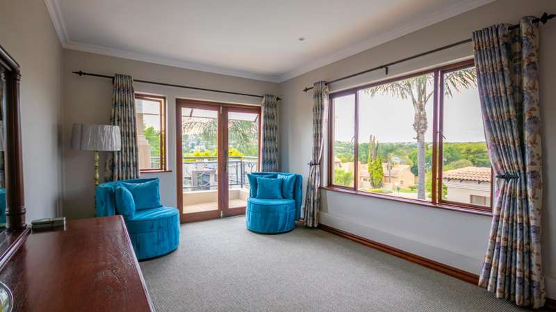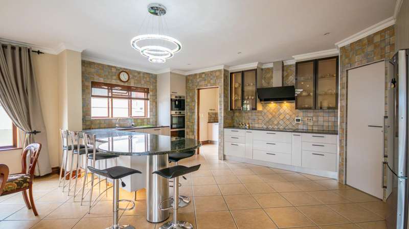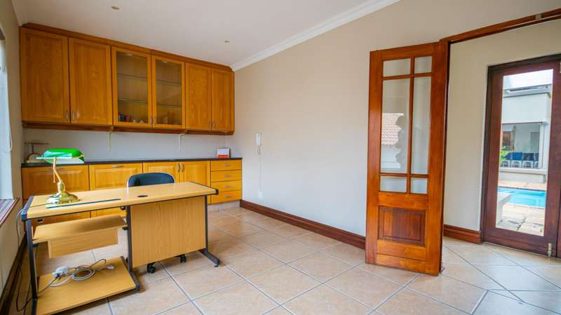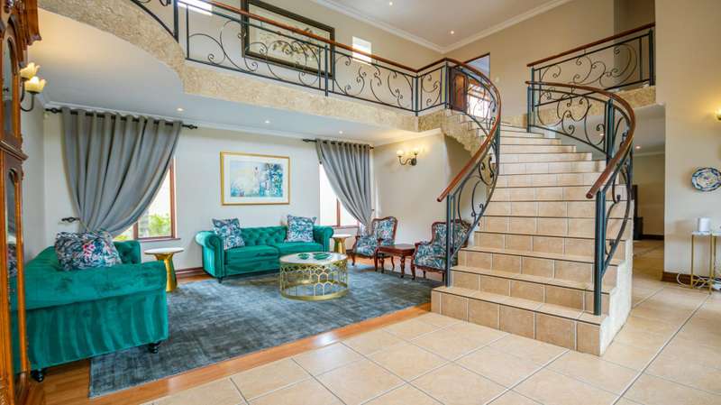 Discover the epitome of luxury living in the prestigious Woodhill Golf Estate, where elegance and sophistication merge seamlessly. This stunning residence is beautifully positioned within the sought-after estate, offering captivating views that enhance its warm, inviting ambiance?Çöperfect for both intimate family gatherings and entertaining guests. Upon entering, you are greeted by a grand double-volume foyer that sets a stately tone for the home. The formal lounge offers a stylish and serene space for hosting, while the open-plan TV lounge flows effortlessly into a charming entertainment area complete with a fireplace and a beautifully crafted wooden bar. The adjoining undercover patio is equipped with built-in wooden and gas braais, granite countertops, and a prep bowl. For al fresco dining, the expansive open patio overlooks a pristine pool and exquisitely manicured garden, providing the perfect backdrop. The newly upgraded kitchen boasts premium Bosch appliances, granite surfaces, and a spacious separate scullery for added functionality. On the ground floor, a dedicated study, fitted with solid wood cabinetry, offers an ideal home office setup. Upstairs, the main bedroom serves as a peaceful sanctuary, featuring ample closet space, air conditioning, and access to a private balcony with an outdoor shower and panoramic estate views. The en-suite bathroom includes dual basins, a shower, a bathtub, and a toilet. The second bedroom comes with its own en-suite bathroom, while bedrooms three and four share a full family bathroom, which includes a bath, shower, and double basins. An additional guest toilet is conveniently located. Additional features of the home include a 5KVA inverter, ensuring uninterrupted power, and an irrigation system that keeps the garden lush and vibrant. The property also offers two double automated garages, with extra space for a golf cart, and direct access to the home from one of the garages. Woodhill Golf Estate provides an exceptional lifestyle, surrounded by top gyms, shopping centers, and fine dining options.