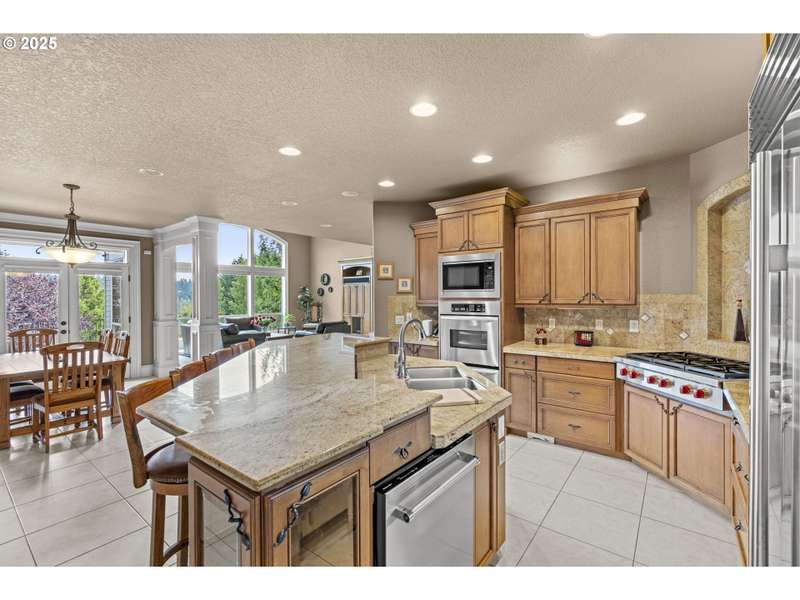 Discover timeless elegance in this four-bedroom, three-and-a-half bath traditional home built in 2003. Nestled on a coveted corner lot overlooking the Salmon Creek Greenway, this craftsman-inspired residence pairs undeniable curb appeal with modern upgrades. Inside, soaring 18-foot ceilings and generous windows create a light-filled ambiance. The expansive primary suite offers a true retreat, while the double-sided fireplace adds warmth and charm throughout.The gourmet kitchen is a chef’s dream, showcasing a Wolf six-burner range, Sub-Zero refrigerator, and new pot filler. Lifestyle upgrades include three fireplaces, a central vacuum, a radon mitigation system, dual air conditioning units, two brand-new water heaters, and a commercial-grade Speed Queen washer and dryer.Freshly painted exterior and glazed outdoor living spaces ensure lasting peace of mind. The extra-deep, three-car garage provides abundant storage and parking flexibility.The downstairs level offers an ideal multi-generational living option with 1,974 sq. ft. of flexible space: a wet bar with dishwasher and multiple outlets, a full flex space, living room, a private bedroom with en suite bathroom, an additional full bath, and two more bedrooms. Expansive balconies on both levels seamlessly extend the living space outdoors, creating inviting areas for entertaining, relaxing, or simply taking in the serene setting.Blending elegance with ease, this home delivers both luxury and livability, with spaces crafted for gathering and retreats tailored for multi-generational living.